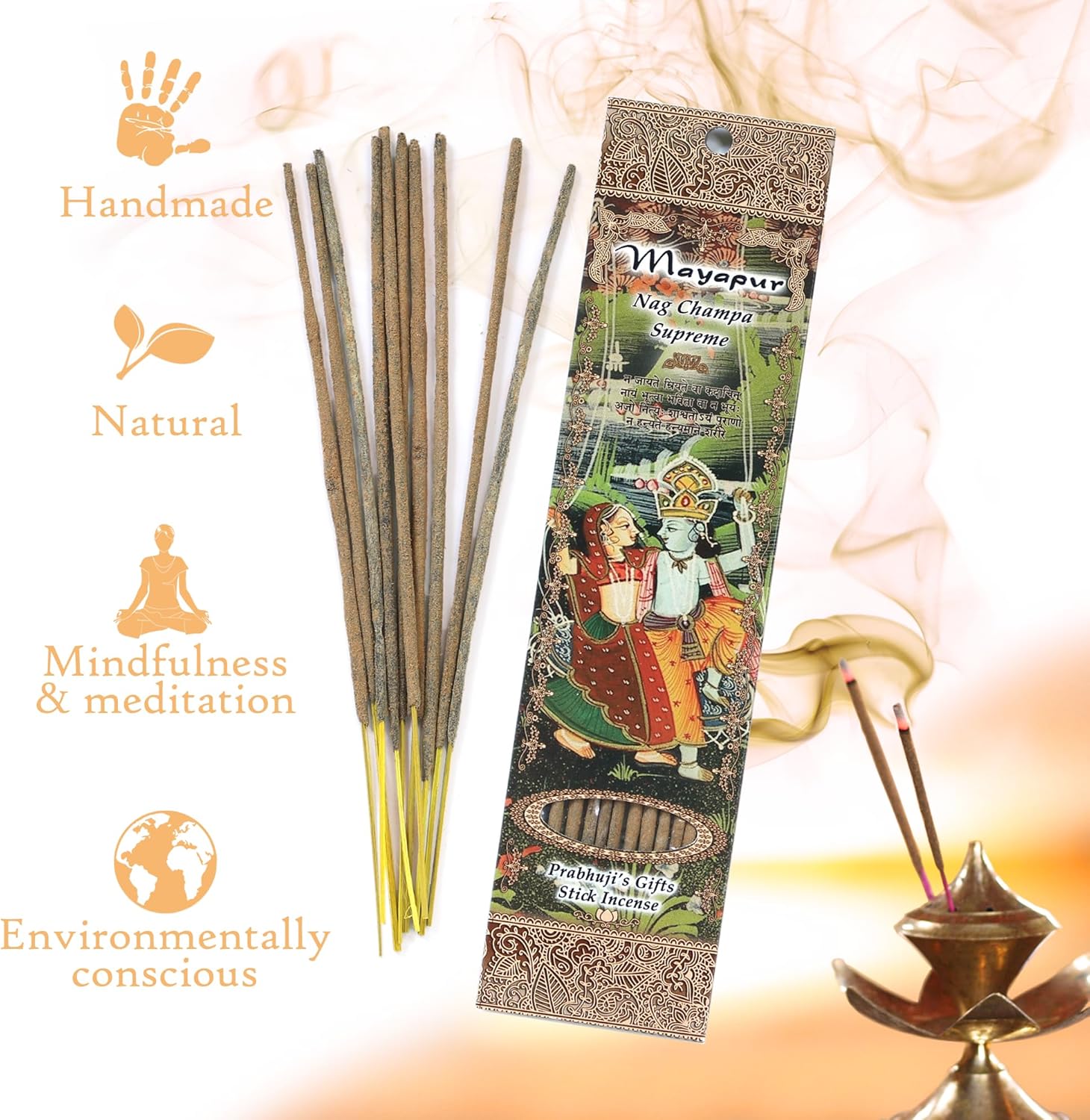 Prabhuji’s Gifts Mayapur Hand-Rolled Incense Sticks – Spiritual Incense – Aromatic – for Meditation, Yoga, Relaxation, & Aromatherapy – Nag Champa Supreme – 3 Packs of 10 Sticks