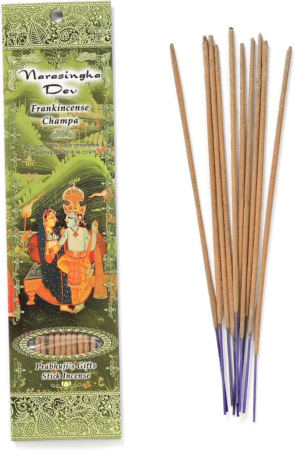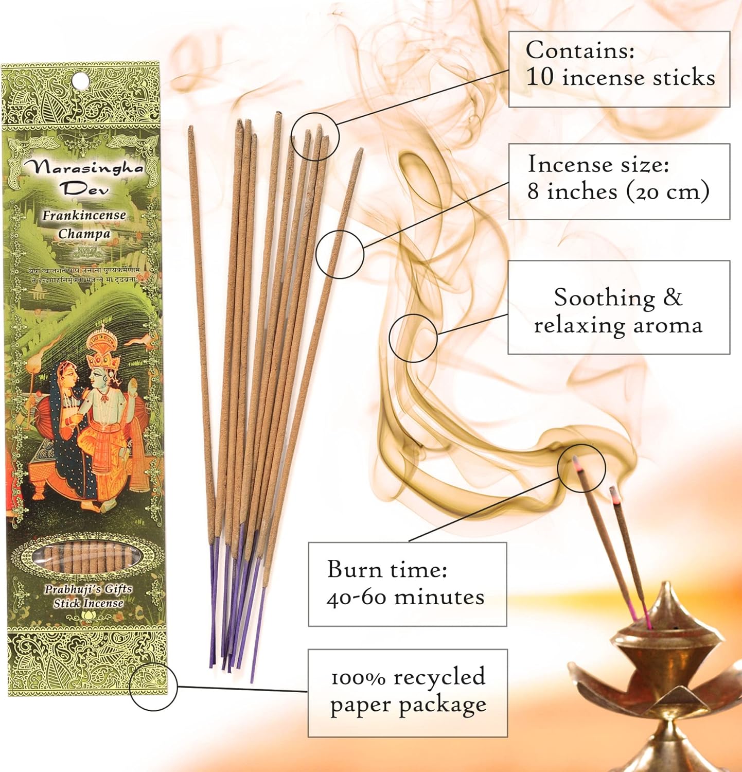 Prabhuji’s Gifts Narasingha Dev Hand-Rolled Spiritual Incense Sticks from India – Aromatic – for Meditation, Yoga, Relaxation, & Aromatherapy Incense – Frankincense Champa – 3 Packs of 10 Sticks