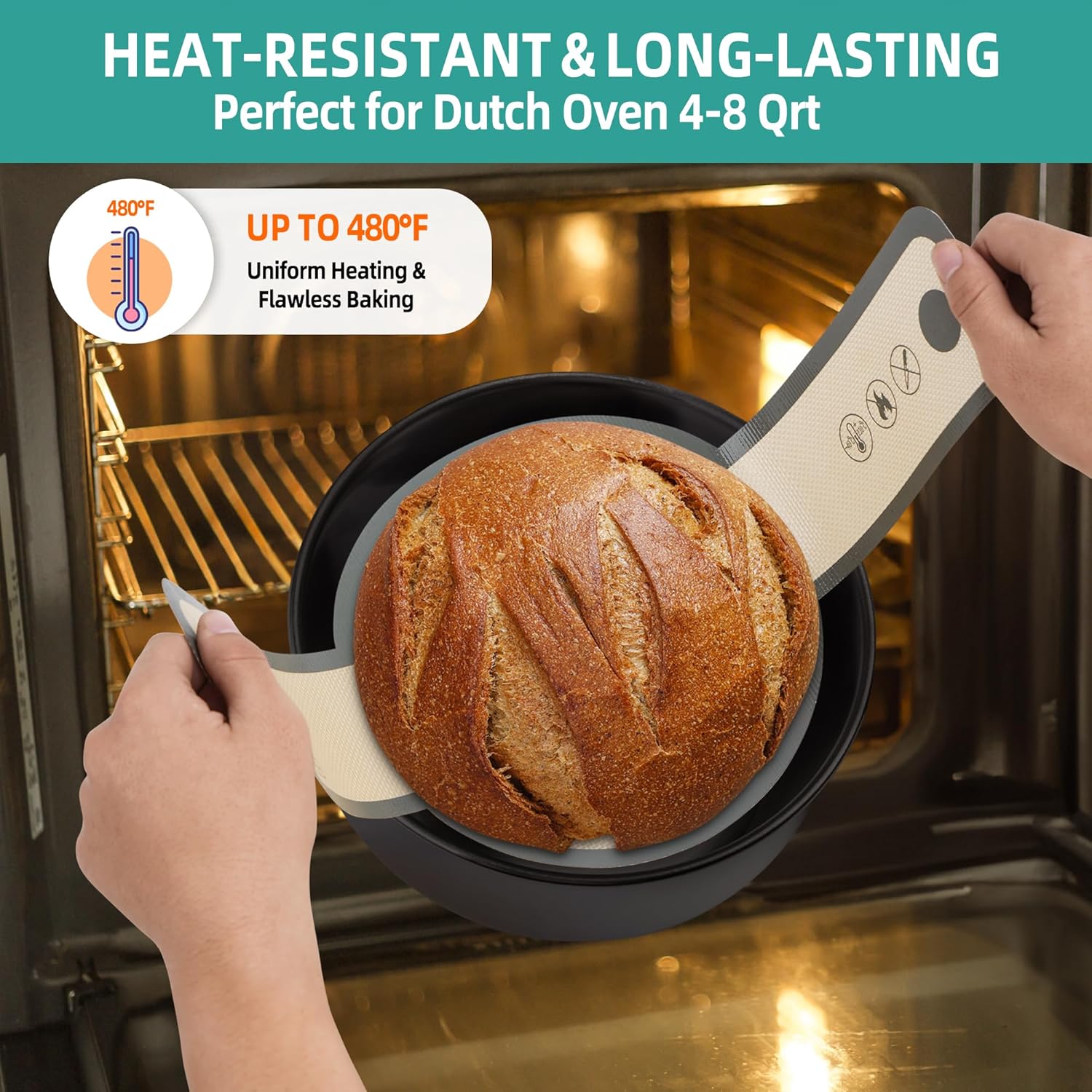 【Heat-Resistant & Long-Lasting】 Our sturdy sourdough silicone bread sling, capable of withstanding temperatures up to 480°F, is perfect for Dutch ovens and electric ovens, ensuring a longer lifespan for your baking essentials. Plus, as a reusable and eco-conscious alternative to parchment paper, our silicone dutch oven liner not only saves you money but also reduces your environmental footprint.
