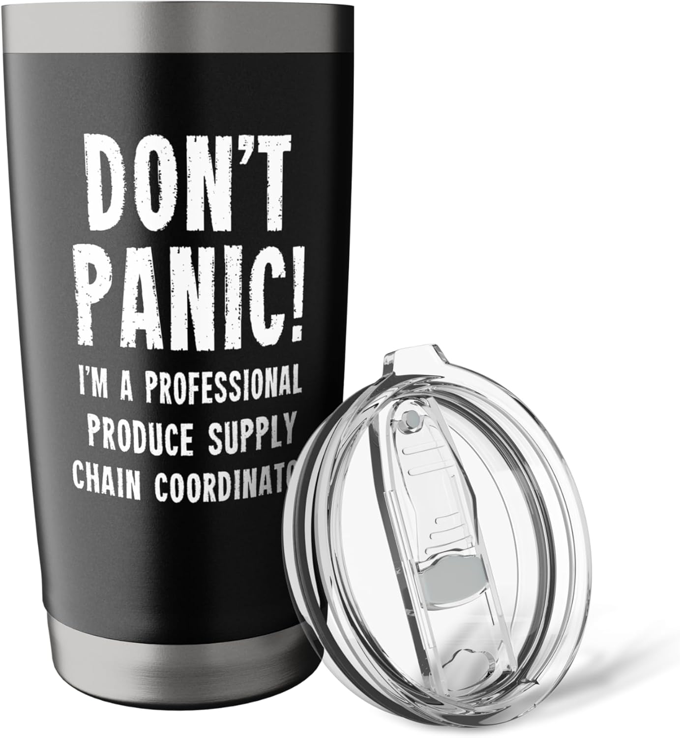 A funny and unique gift idea for fresh produce logistics experts – “Don’t Panic! I’m A Professional Produce Supply Chain Coordinator”.