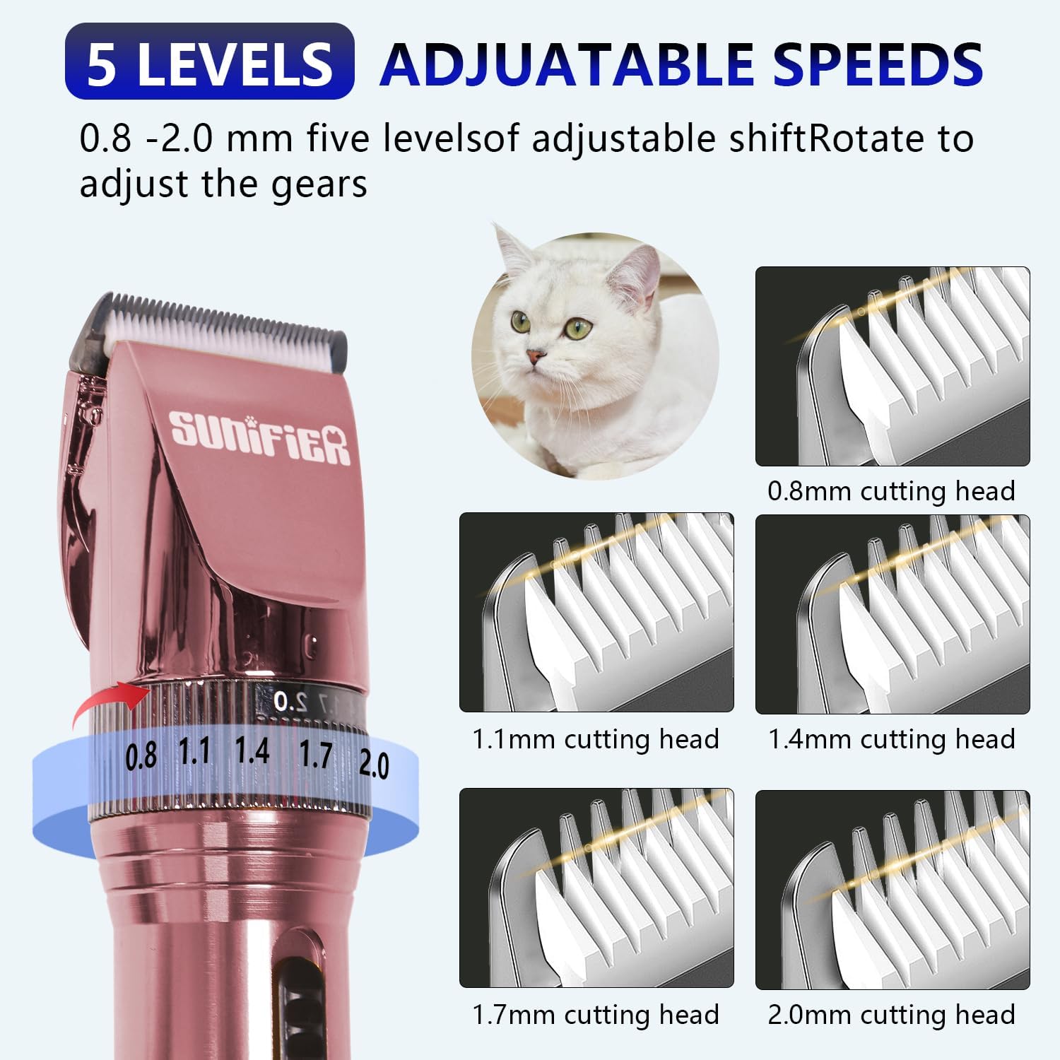 Customizable Grooming: Adjust the grooming speed to your preference with the 5-level shift feature, ranging from 0.8mm to 2.0mm. This ensures that the clippers suit various fur thicknesses, giving you precise control over the grooming process. The 4 included guard combs allow you to achieve different hair lengths, guaranteeing a perfectly groomed appearance for your furry companions.
