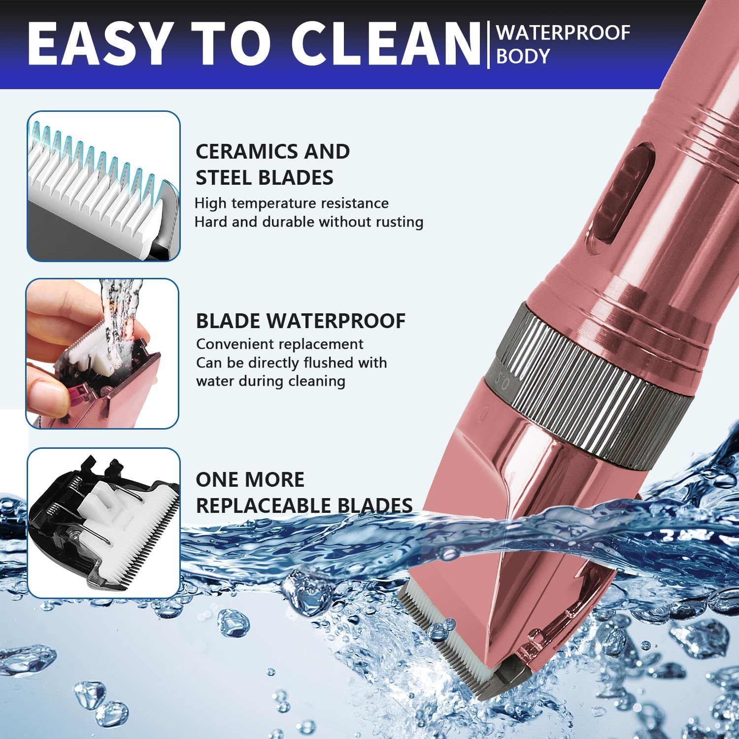 Easy-to-Use and Clean: Coming with two detachable blades(35-tooth titanium and ceramic movable blades), provide exceptional cutting performance and are simple to clean and replace. With a 10ft long cord, these clippers offer excellent maneuverability during grooming sessions. The plug-and-play functionality allows for quick setup, so you can get started with ease.