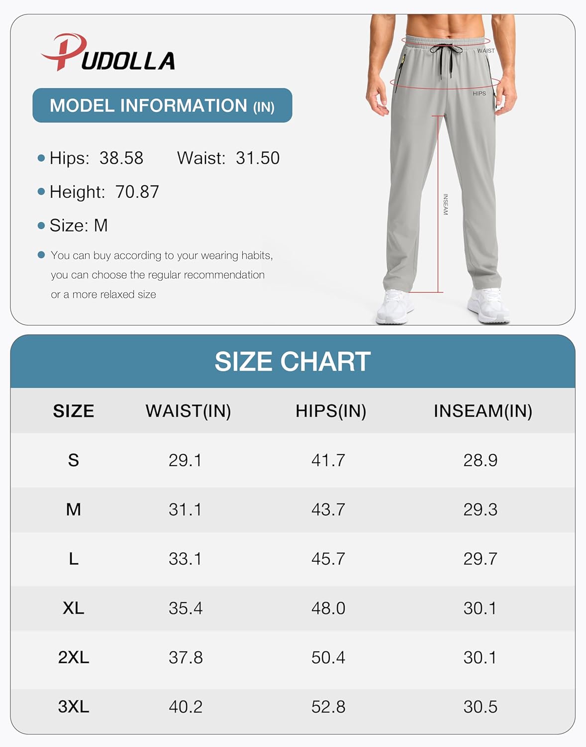 Pudolla Men’s Lightweight Hiking Pants Quick-Dry Breathable Outdoor Sweatpants with Zipper Pockets for Casual Travel Athletic
