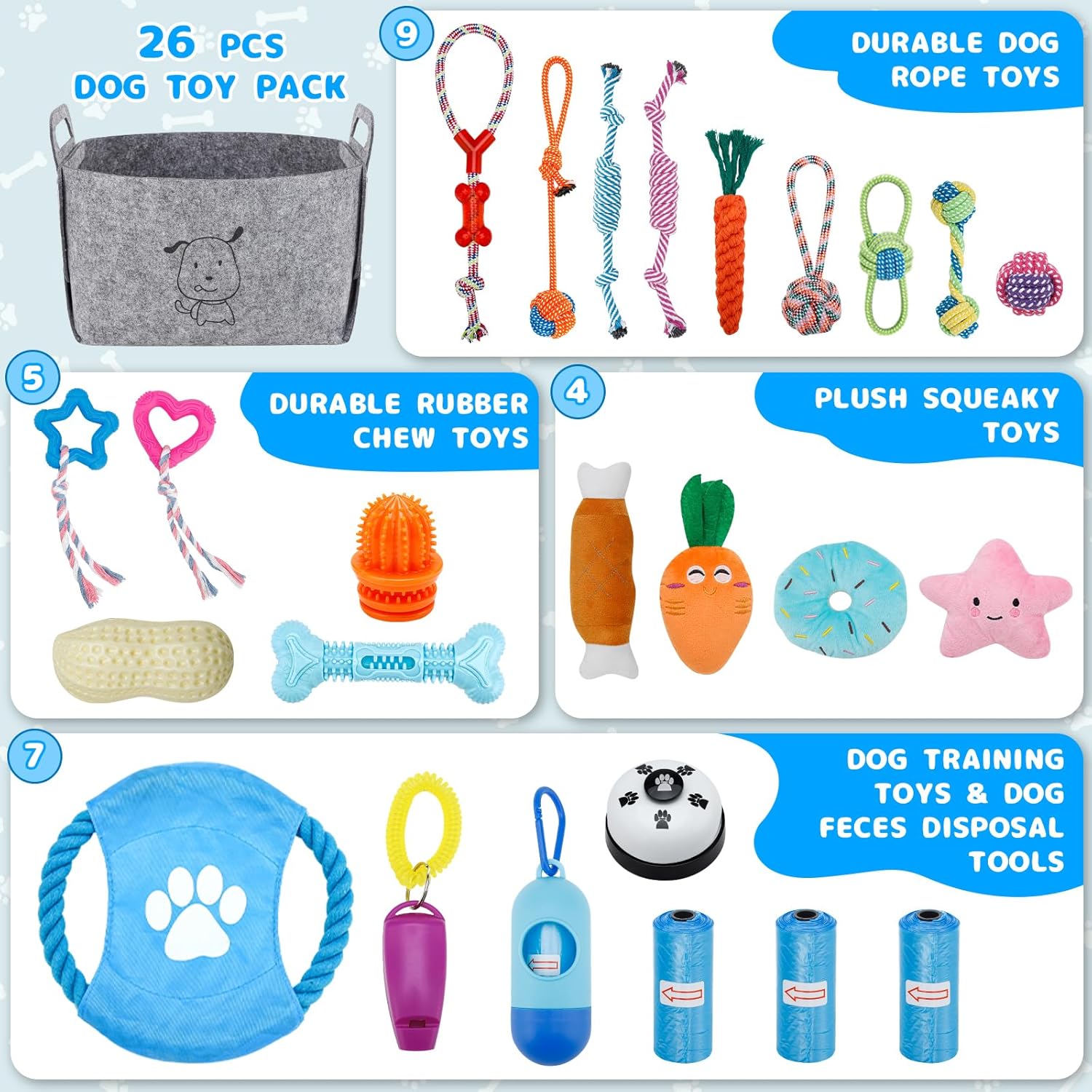 Puppy Chew Toys for Teething, 26 Pack Dog Chew Toys Puppy Teething Toys, Interactive Dog Rope Toys with Bin, Dog Toys for Small & Medium Dogs