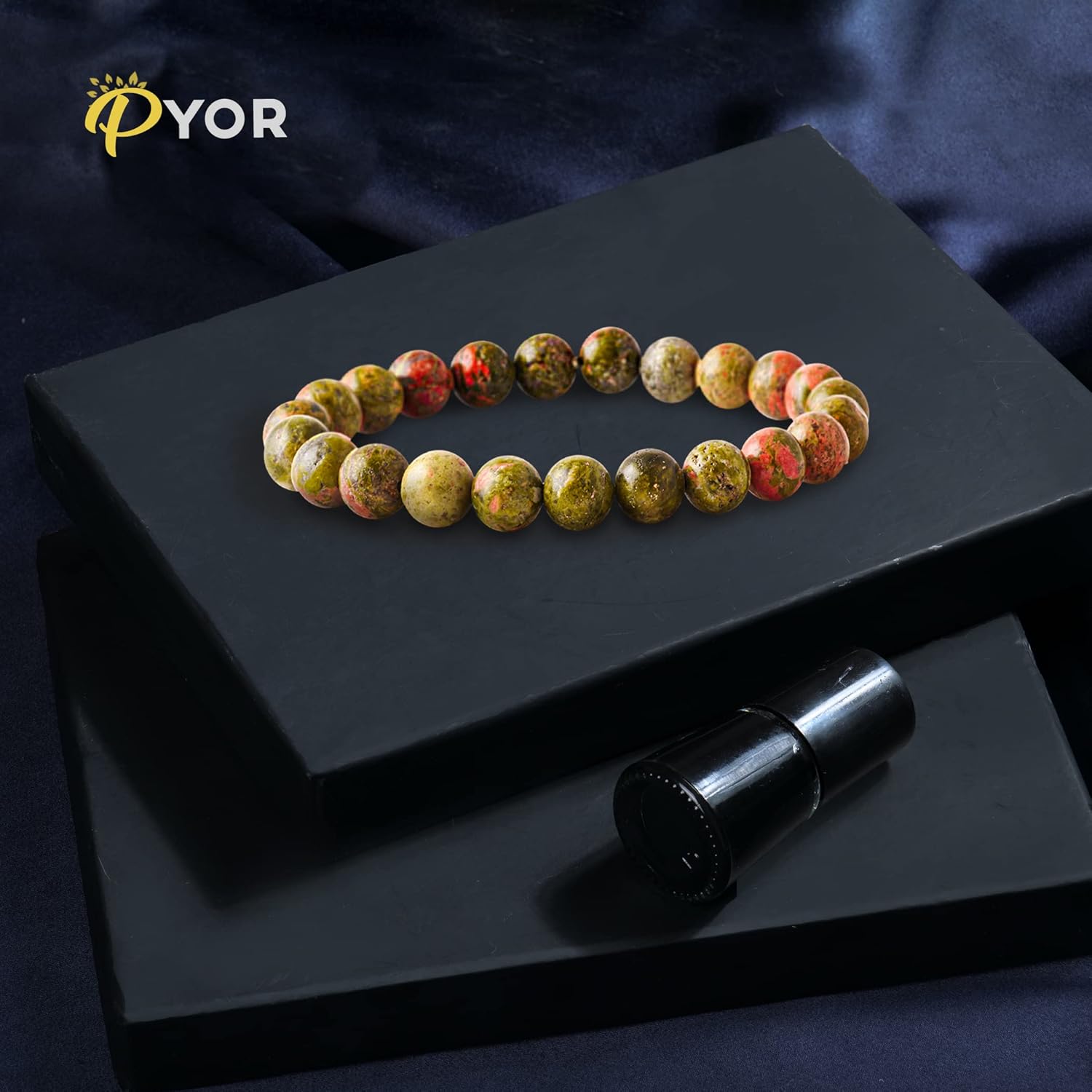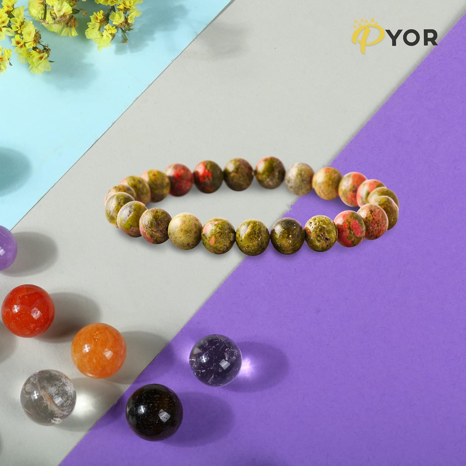 PYOR Unakite Crystal Beads Bracelet Chakra Healing Crystals Gemstones Reiki Spiritual Gift Jewelry Good Luck Gem Positive Gifts Natural Stone Prosperity Stones Spiritual Bead Bracelet Precious Stone