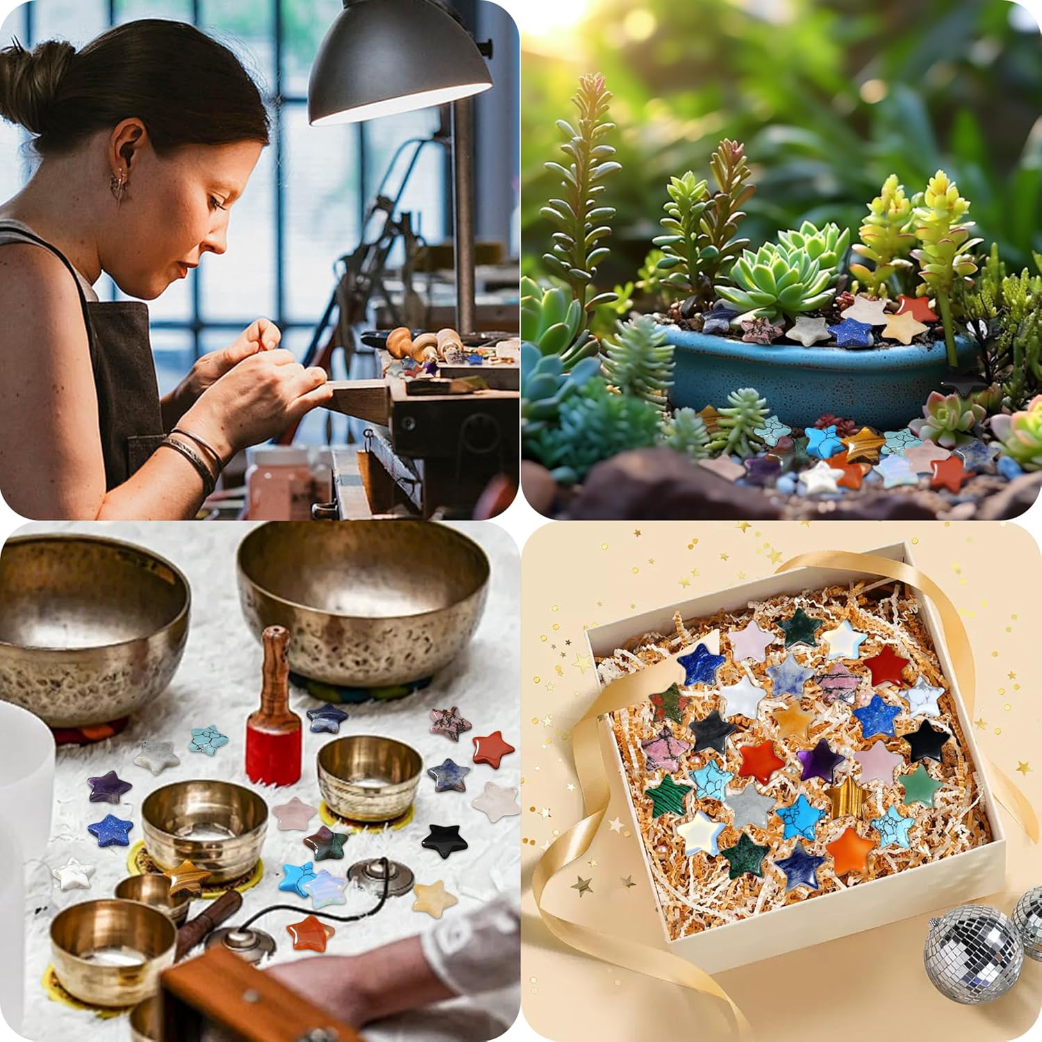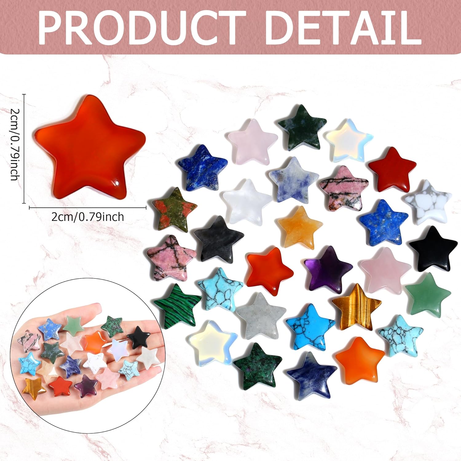 QINJIEJIE 20PCS Crystals Star Stone Healing Crystal Set Mini Crystal Stars Worry Stones Bulk Chakra Crystal Cute Pocket Star Gemstones for Meditation Balancing DIY Jewelry Star Stones Gifts for Women