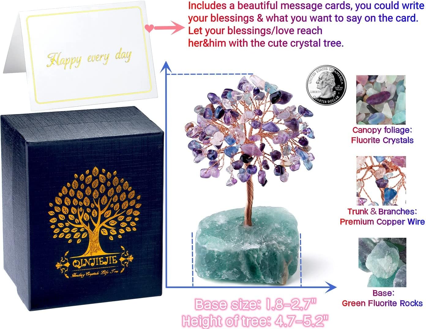 QINJIEJIE Fluorite Crystal Tree Healing Crystals Gemstone Tree Natural Stone Base Copper Wire Life Tree Money Tree Energy Desk Decor Spiritual Gifts Meditation