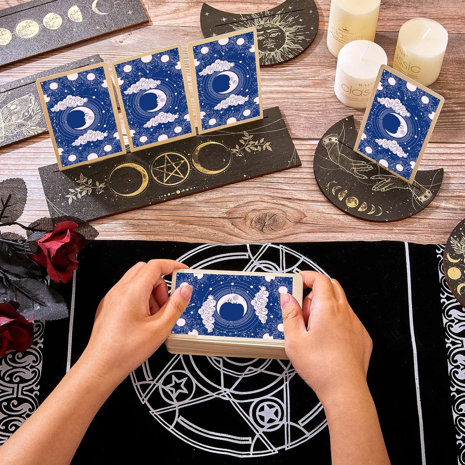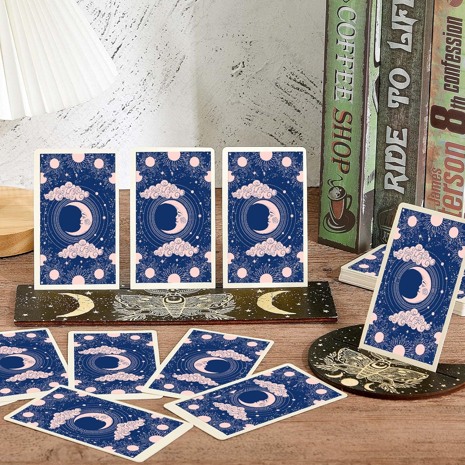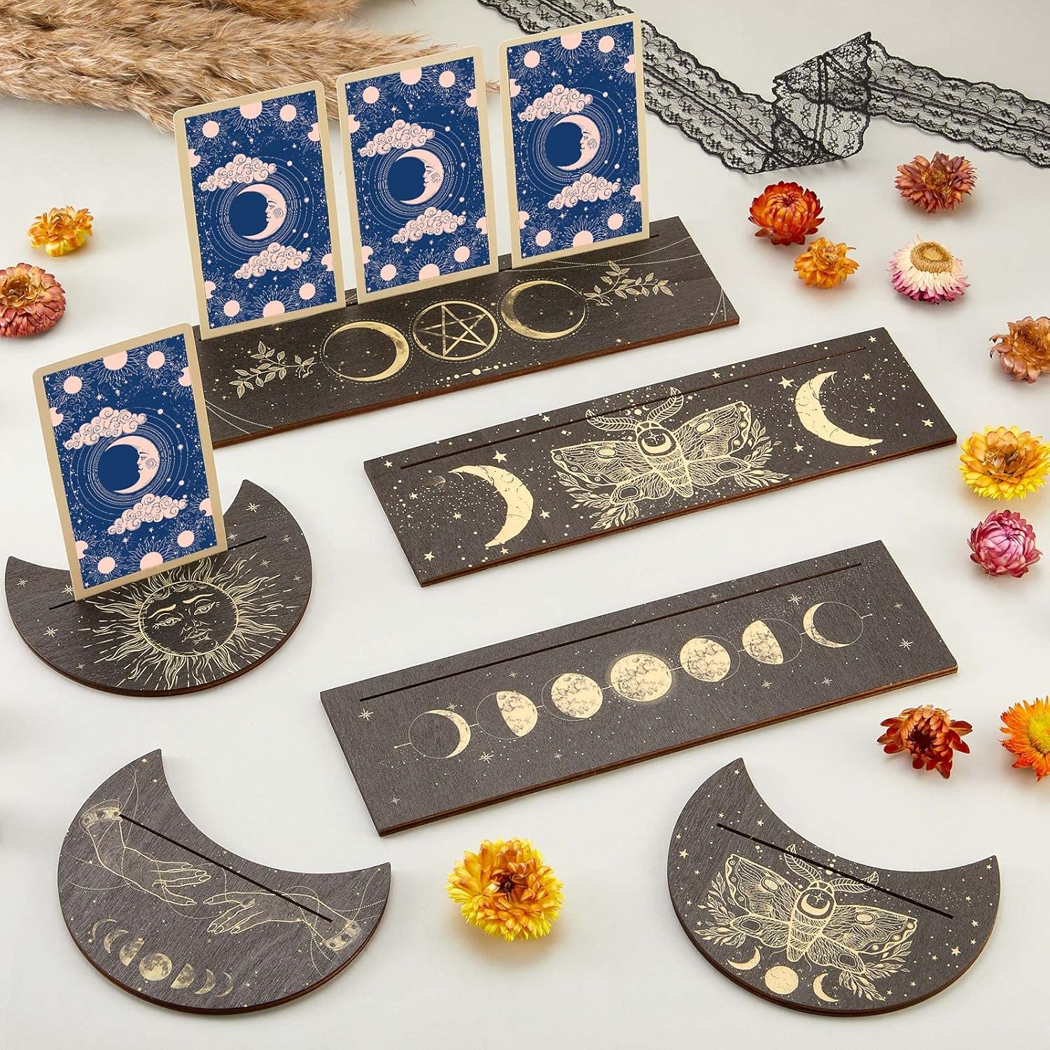 Classical Witch Divination Elements: these tarot card stands adopt classical patterns of moon phase, sun god and moon moth, distinctive and exquisite in workmanship, nice to help you to complete the divination ritual