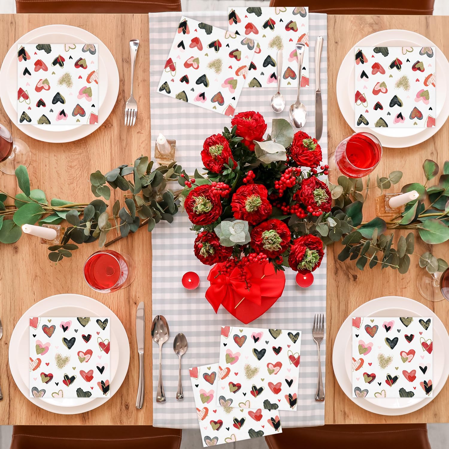 ❤【Decorative Napkins】heart printed party napkins with bright colors and clear printing, suitable for decorating your wedding, anniversary, birthday party, baby shower, bridal shower, tea party, spring theme party, etc., making your dining table more beautiful and impressive
