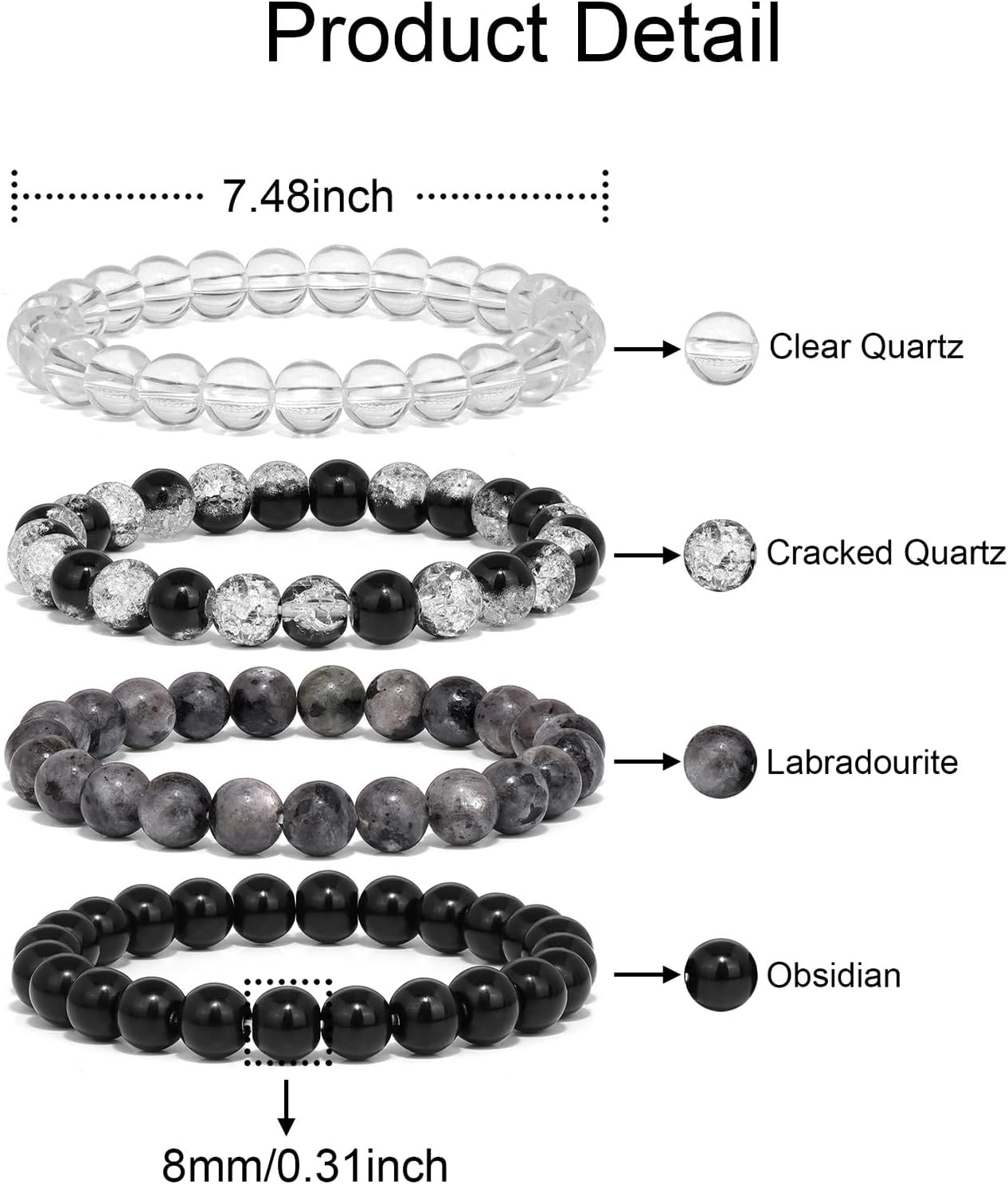 Raicegs 4PCS Healing Crystal Bracelet for Women Men Natural Stone Beads Bracelet 8mm Stack Gemstone Spiritual Jewelry Gift for Women Men