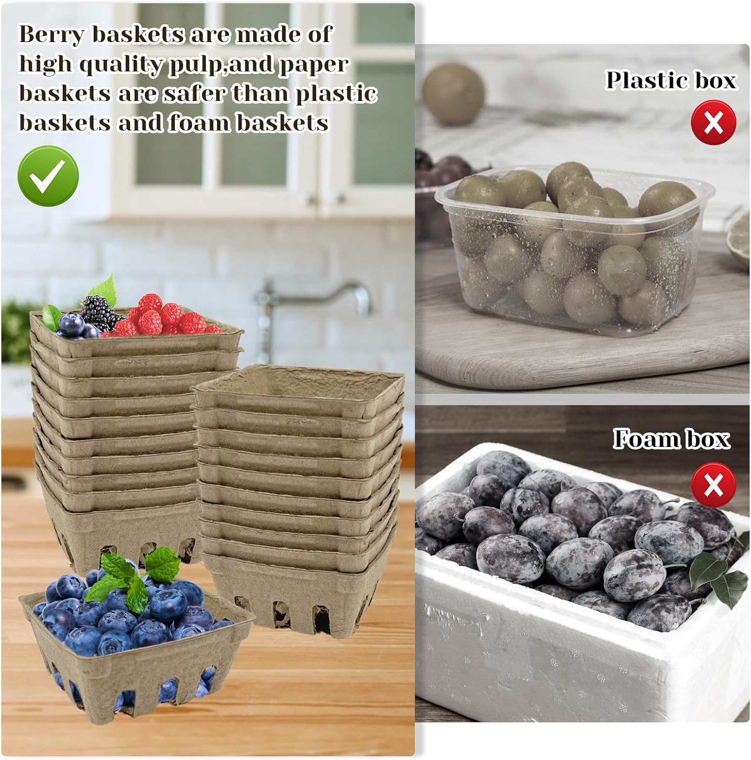 ✅Safe and Reliable: berry baskets are made of pulp fiber material, lightweight and sturdy, reusable and recyclable, thickened material makes them last longer, safe for you to use, which can be applied for a long time. and paper baskets are safer than plastic baskets and foam baskets.