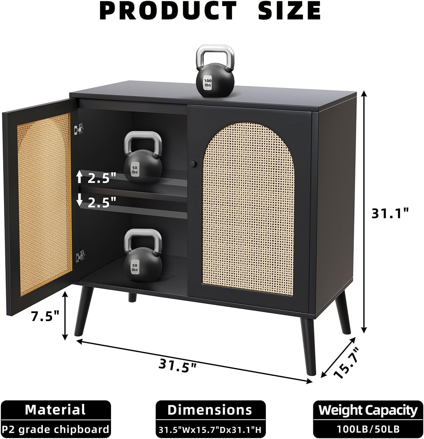 8 reviews for Rattan Storage Cabinet with 2 Door – Buffets & Sideboards, Accent Cabinet Buffet Cabinet with Storage for Living Room Hallway Entryway Kitchen Modern Home Decor Black
