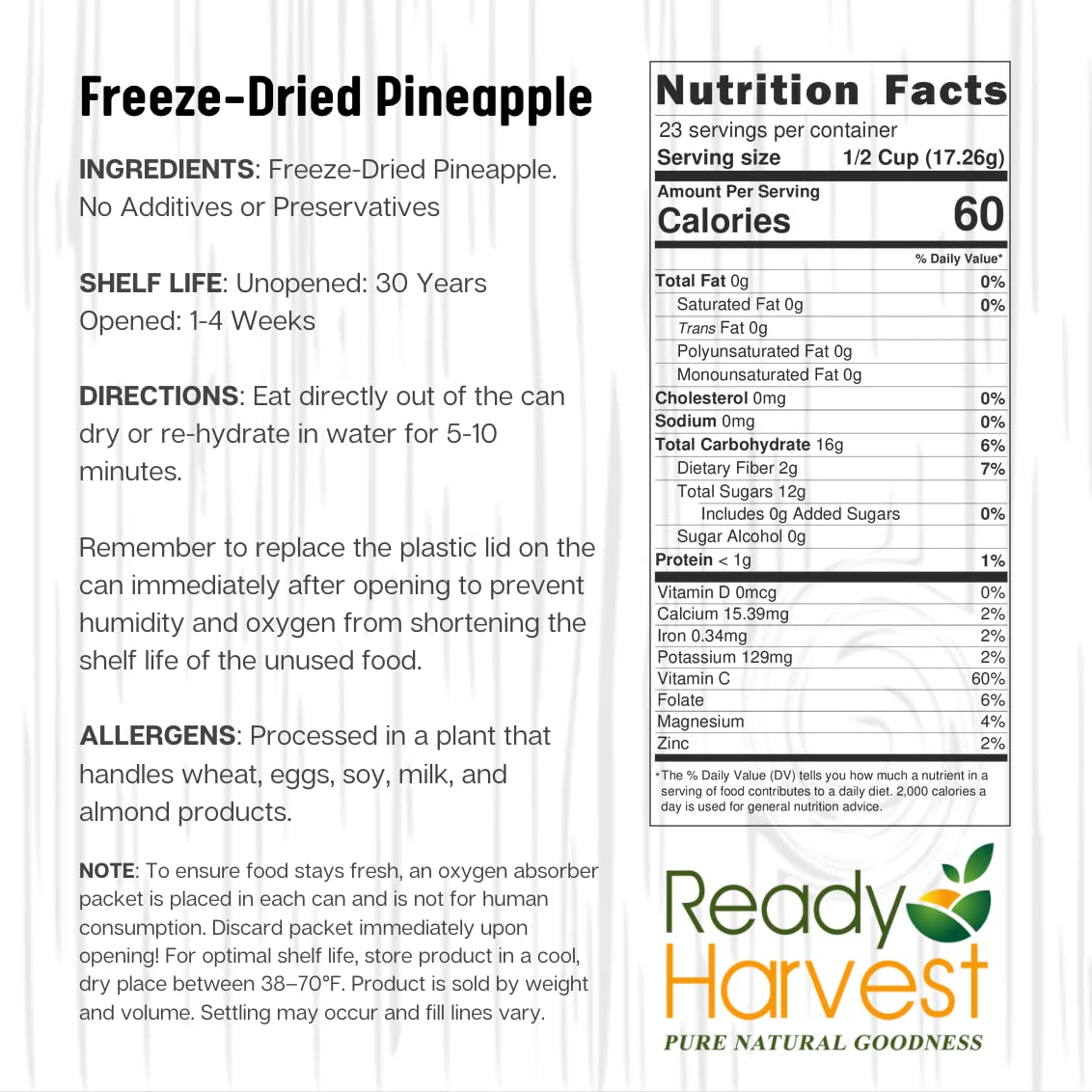 Ready Harvest Pineapples Freeze Dried Whole Foods for Emergency Food Storage, Camping Supplies, and Survival Kits | Sealed Fresh in #10 Can | 30 Year Shelf Life | 6 Cans