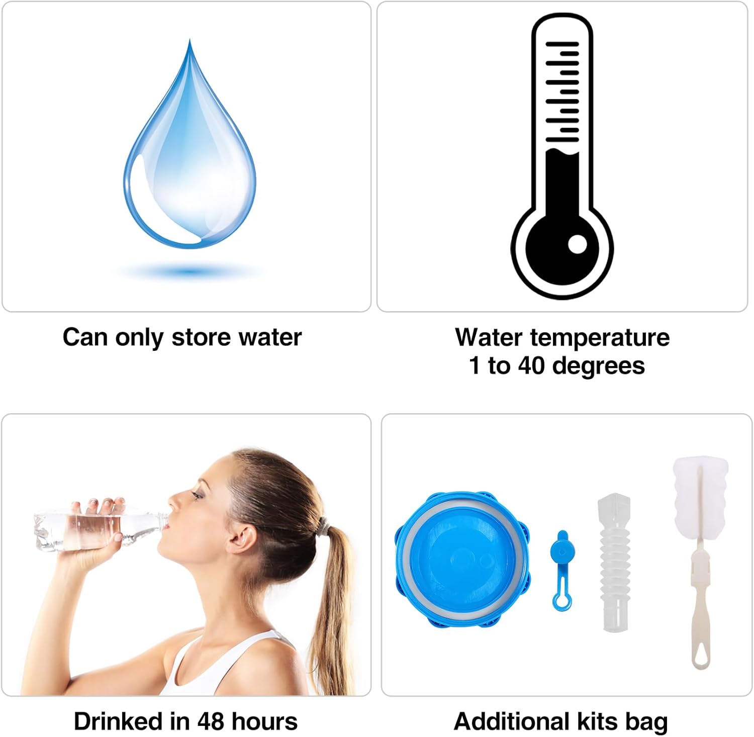 Convenient Drinking Design: The water container has a unique spigot that allows you to control the flow rate of your drink and prevent spills. It also comes with an extension water pipe. The convenient drinking design of this water container saves you time and effort, allowing you to focus on enjoying your outdoor activities.Water storage container features a 4-inch wide mouth that makes it easy to clean and fill. You can even reach inside with a brush to clean it thoroughly
