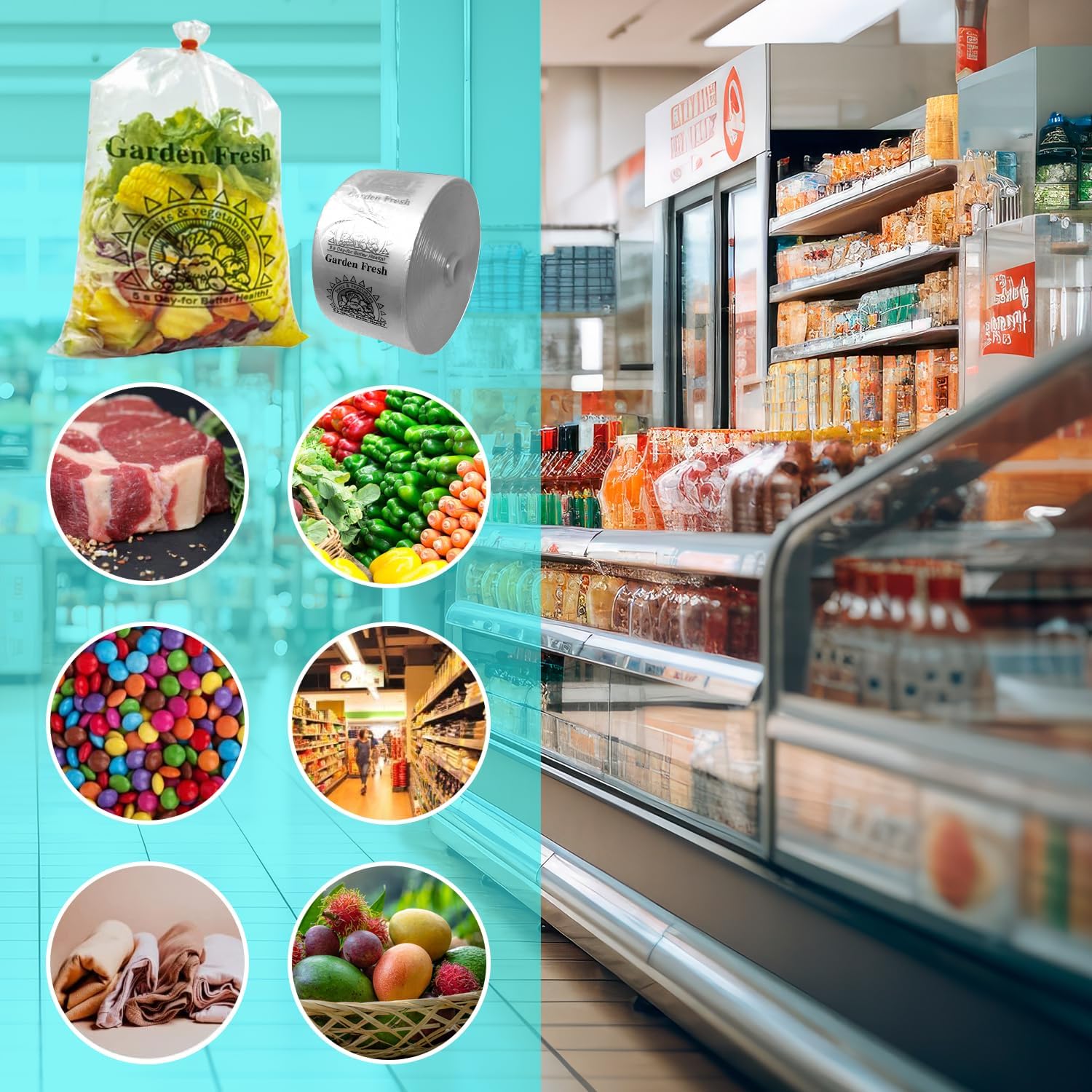 Retail Bags Direct Narrow Profile Produce Roll Bags with Extended plastic core Garden Fresh – 15″X20″ – 3300 Bags – 4 Rolls – 8 microns – Clear