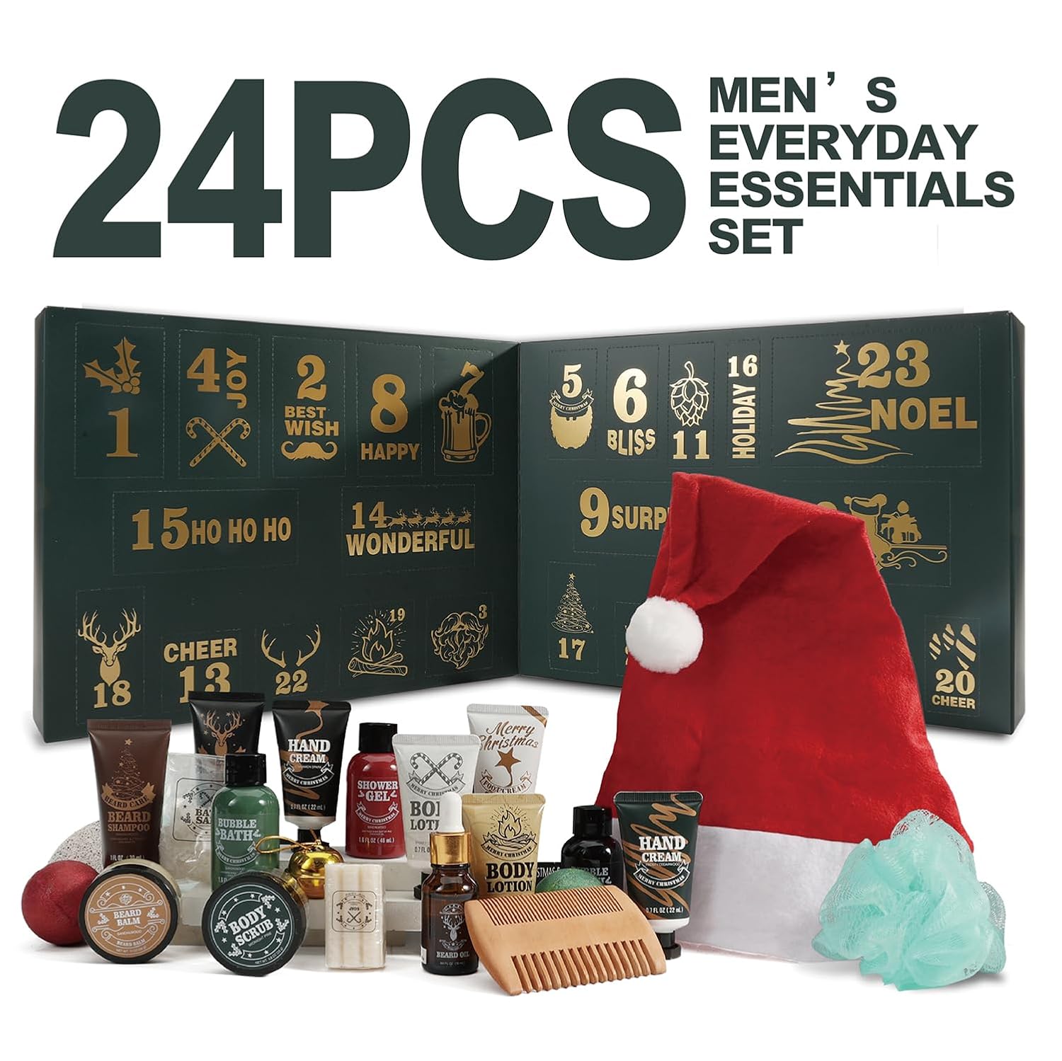 Mens Gift Set Christmas Calendar: 24pcs Gift Set Include Beard Balm,Beard Oil,Beard Shampoo,Beard Comb,Beard Conditioner,Beard Conditioner,Shower Gel, Bubble Bath, Hand Cream,Body Lotion,Body Scrub,Soap,Bath Bomb,Bath Salt etc