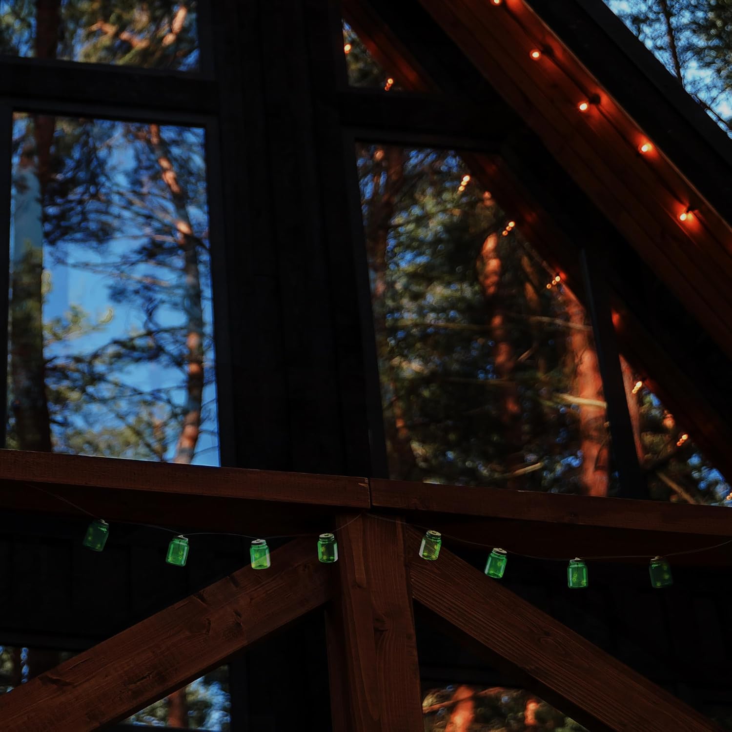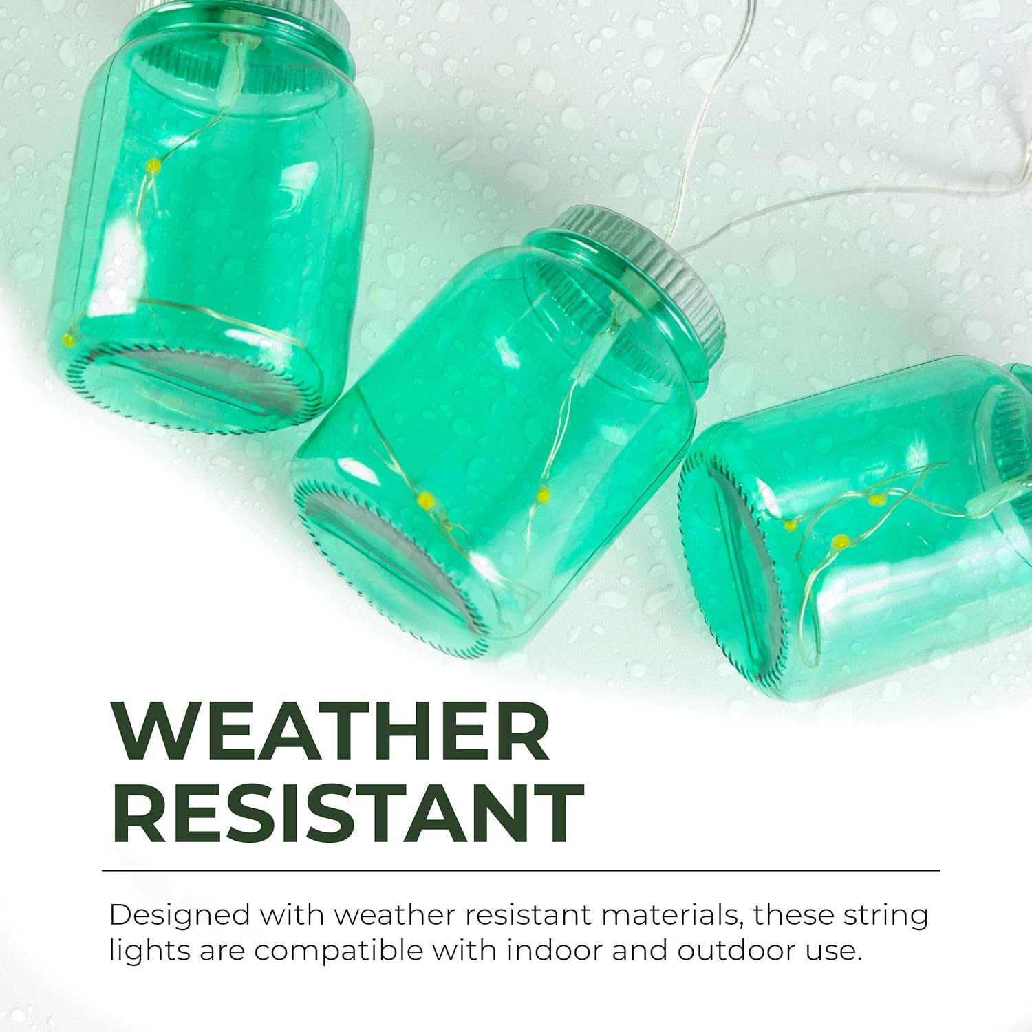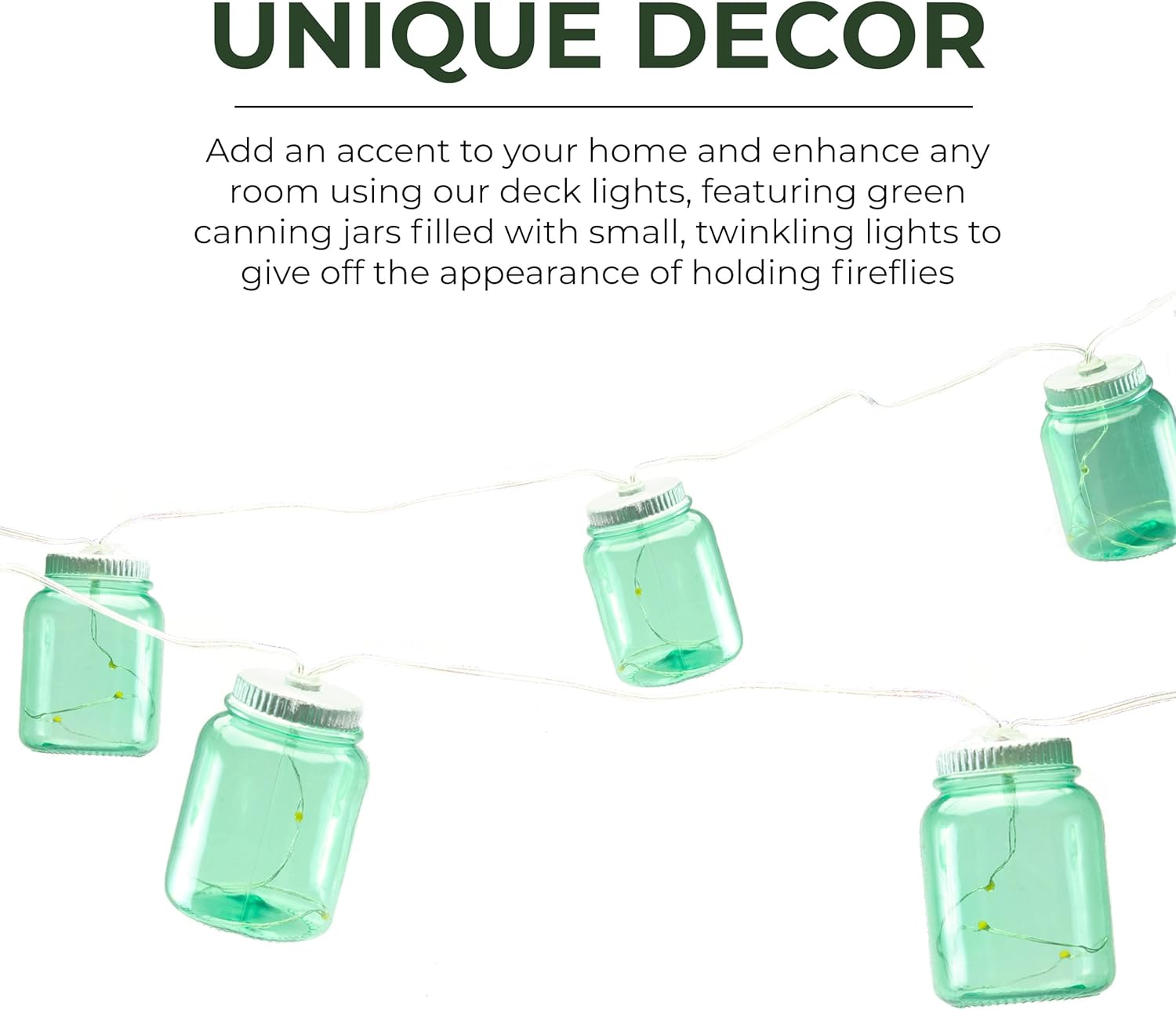 Unique Patio Decor: Add an accent to your home and enhance any room using our deck lights, featuring green canning jars filled with small, twinkling lights to give off the appearance of holding fireflies