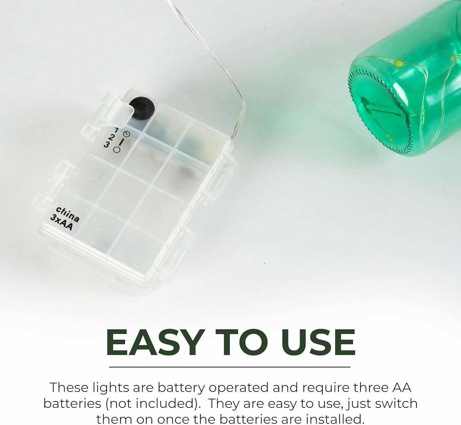 Long-Lasting: Our party lights are equipped with 10 twinkle bulbs so you can have confidence that these lights will provide a lasting glow in your home; powered by 3 AA batteries which are not included