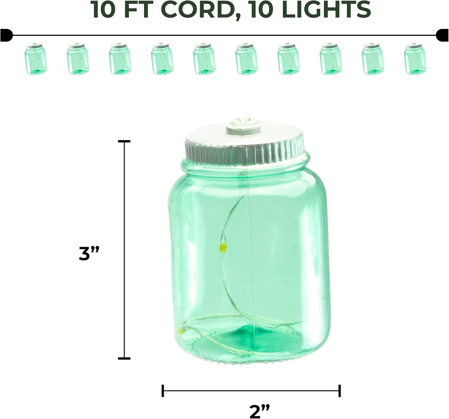 Rivers Edge Products 10-Foot String Lights, Battery Operated 10-Bulb Twinkle Lights, Hanging Fairy Lights for Bedroom, Patio, or Deck, Indoor or Outdoor Home Decor, Canning Jar