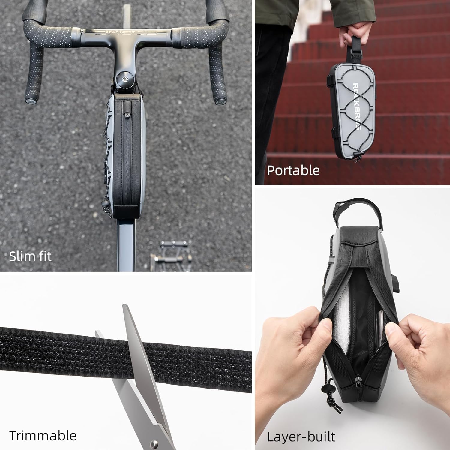 HIGHLY REFLECTIVE: This top frame bag features reflective materials all over, significantly enhancing visibility for pedestrians and other road users, especially in low-light conditions.