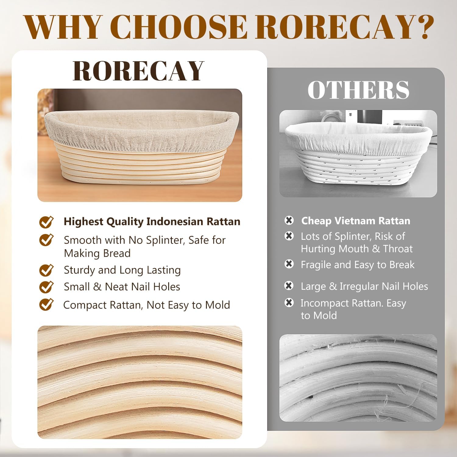13 reviews for rorecay Banneton Bread Proofing Basket Sourdough Bread Baking Supplies, 9 Inch Round + 10 Inch Oval Proofing Bowls with Dough Whisk Bread Lame Dough Scraper Bread Making Tools and Accessories Set
