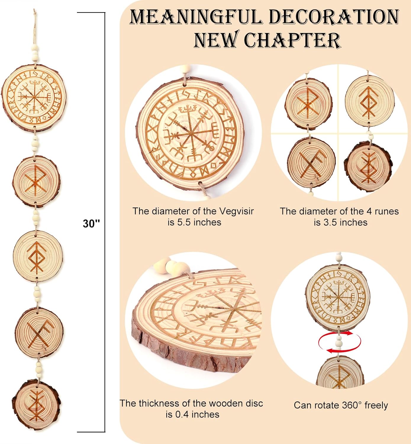 Rune Chain, Home Protection Bindrune Hanger, Decoration Norse Pagan Bind Runes, Rustic Norse Viking Circular Bind Rune Protection Wood Hanging Decor, Protection Bindrune Hanger Pendant