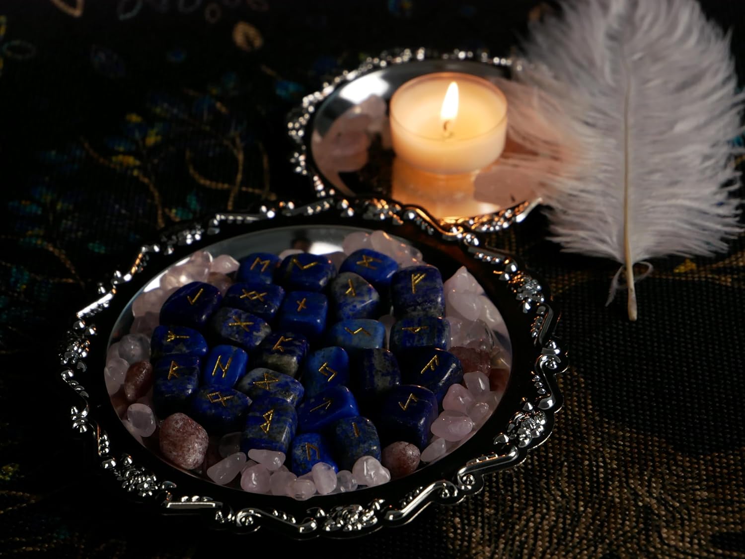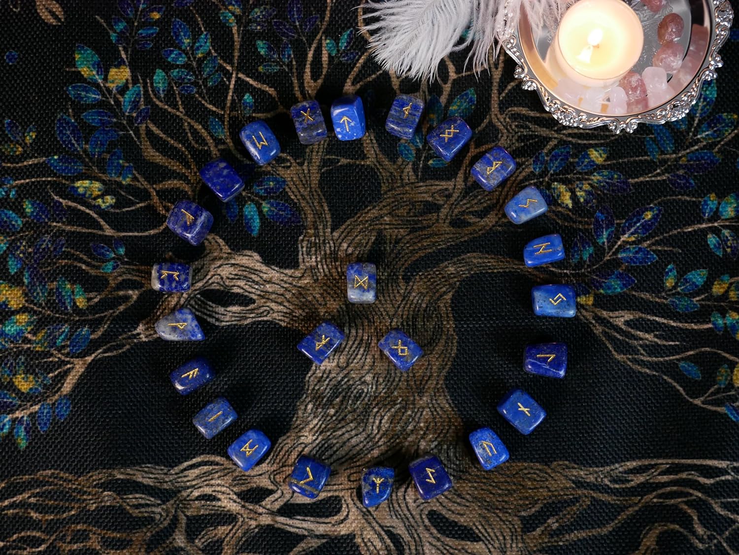 Be the first to review “Rune Stones Set with Engraved Ancient Nordic Runes Alphabet for Meditation and Divination, Made with Lapis Lazuli, 25pcs”
