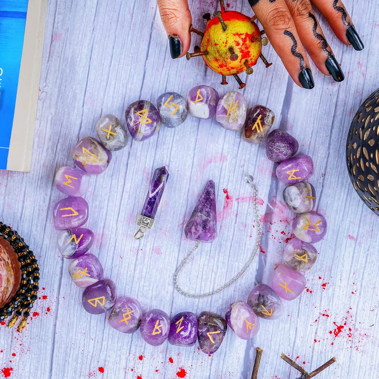 Runes, 25pcs Rune Stone With Engraved Elder Futhark, Wiccan Supplies and Tools, Pendulum Crystal, Indian Natural Stone Runes, Rune Stones, Witch Kit, Spiritual Gifts