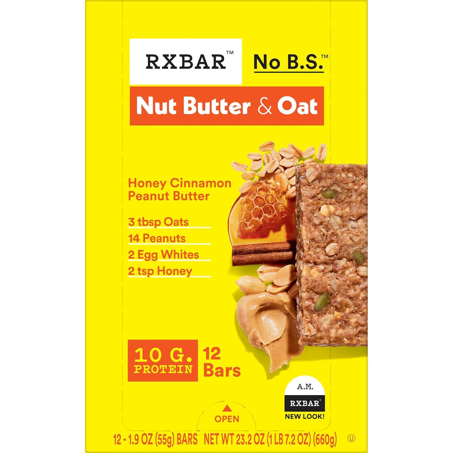 RXBAR Nut Butter and Oat Protein Bars, Protein Snacks, Snack Bars, Honey Cinnamon Peanut Butter, 23.2oz Box (12 Bars)