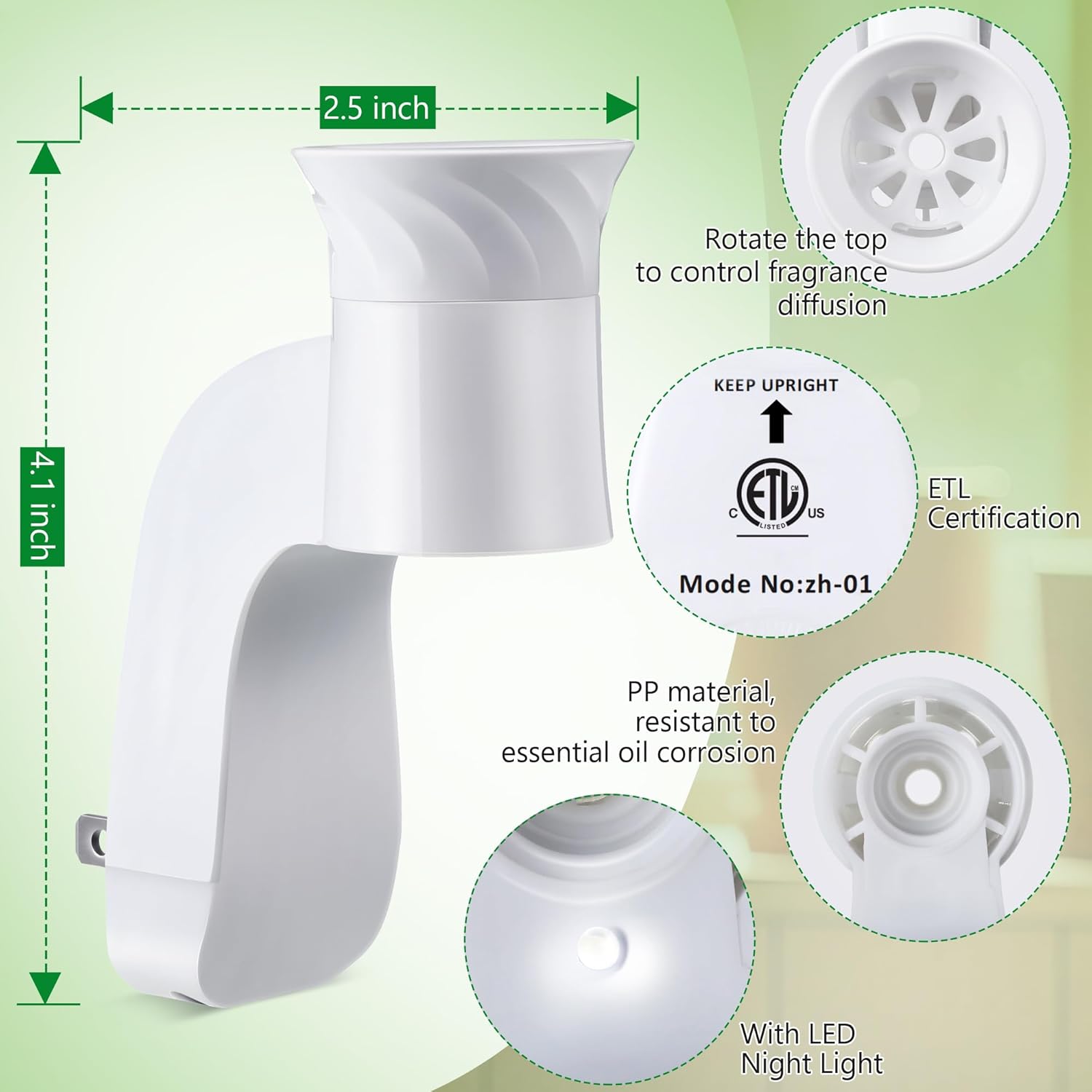 With Nightlight Function: the fragrance plug in with nightlight function design; It can also be applied as a night light while emitting fragrance, making fall asleep with the fragrance, creating a pleasant and relaxing atmosphere, to improve your sleep quality