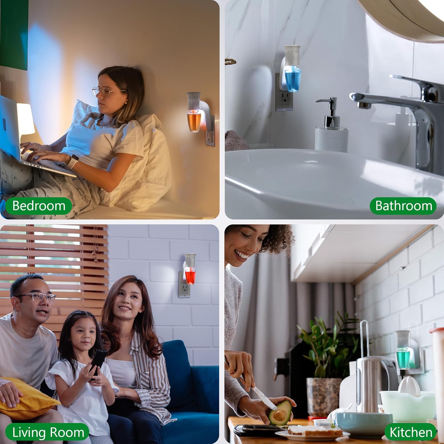 Easy and Safe Operation: just hold the plug in essential oil diffuser upright, turn the perfume bottle refill clockwise to fix it on the plug; Plug in, then can enjoy the fragrance; Simple and easy to use allows to enjoy the fragrance in a shorter time