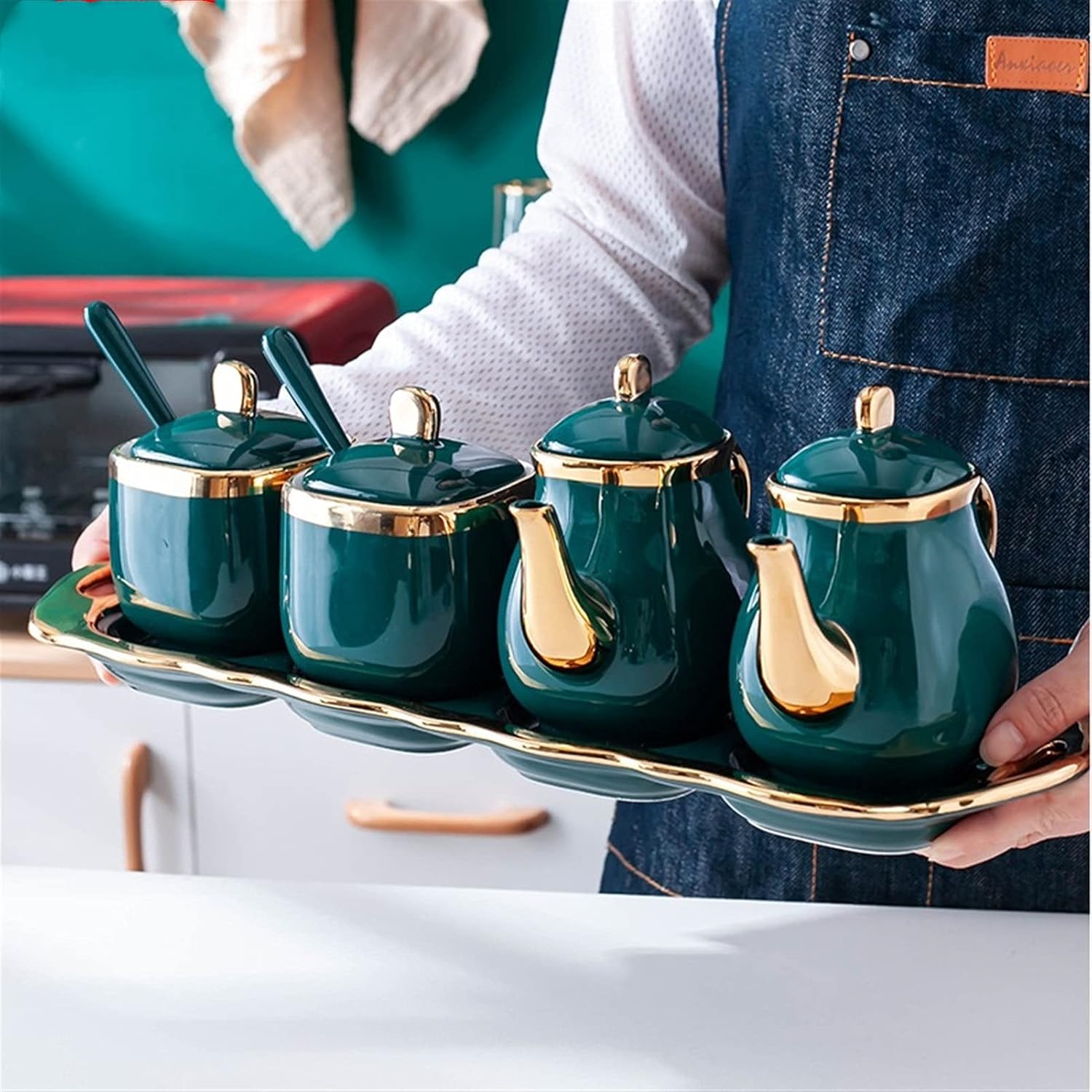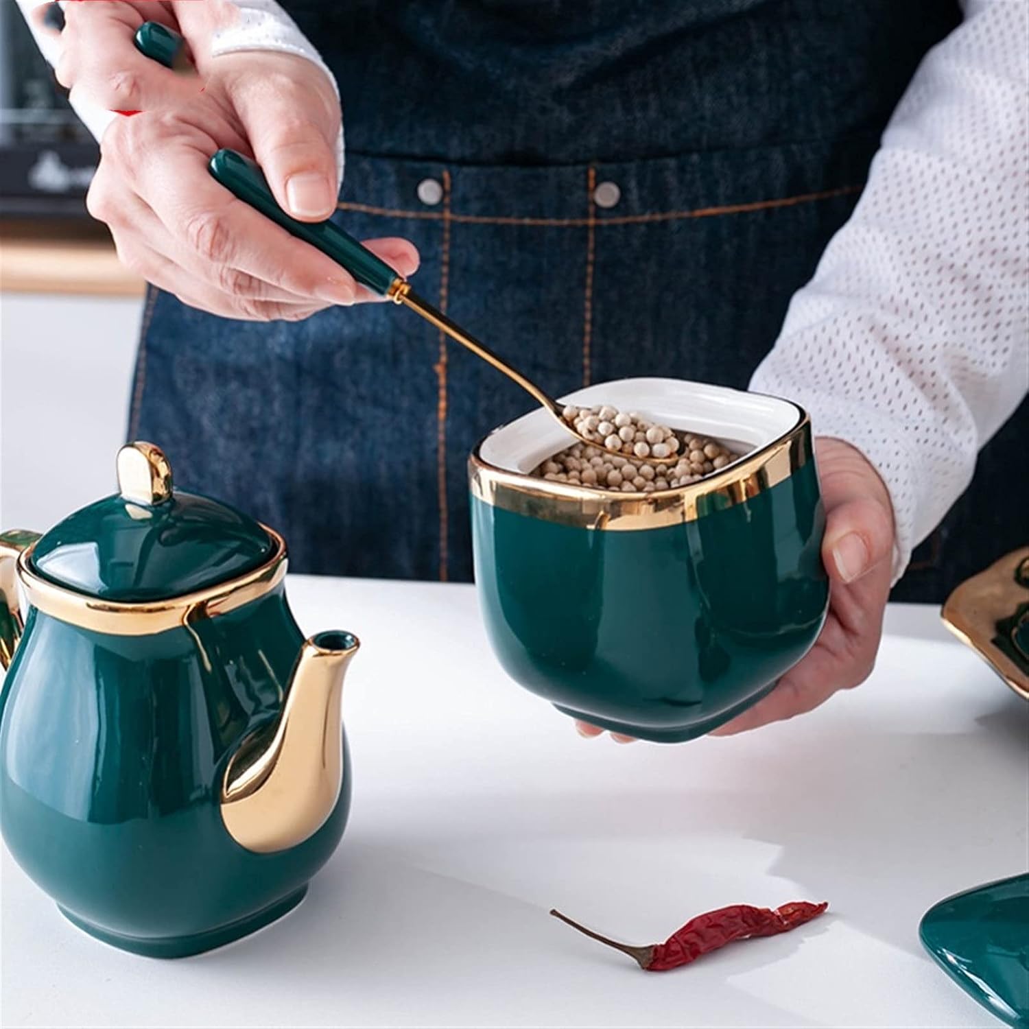 Seasoning jar Set with lid Condiment Jar Set with Tray Ceramic Serving Spoon and Lid Spice Sugar Ceramic Condiment Pot Bowl Used in Sugar Bowl to supp
