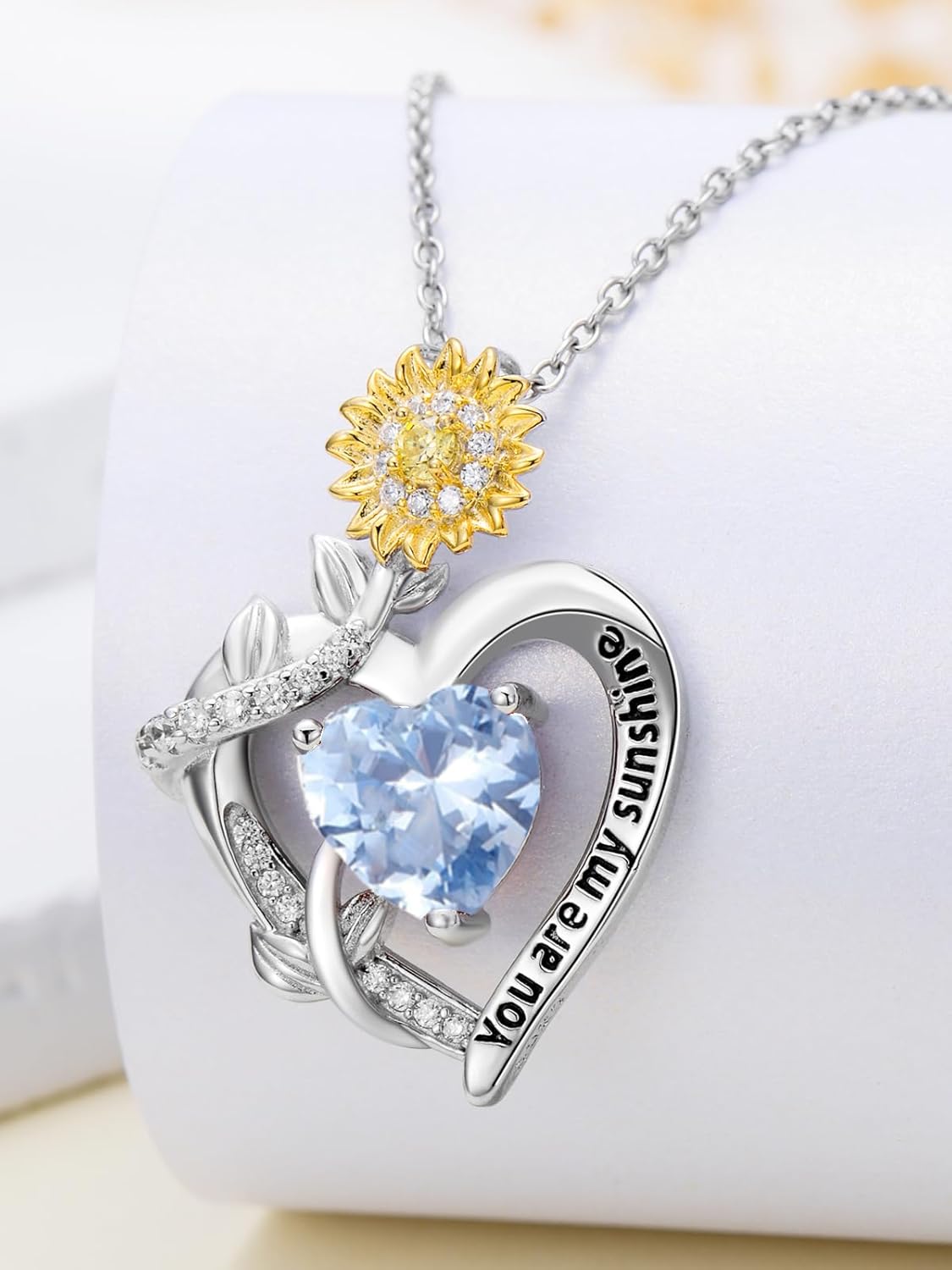 The sunflower necklace is engraved with “You are my sunshine”,you light up my whole world.Sunflower always facing the sun,like unwavering loyalty and love,making it an inspirational sunflower gift for women to be brave,bright and cheerful like a sunflower. Birthstones are mainly for people born in different months, with their own representative stones, and can bring good luck to the wearer. It has its roots and has a special symbolic meaning. Everyone has their own birthday month. It is suitable for many occasions.Sunflower Jewelry for Valentine’s Day,birthdays,Mother’s Day,Thanksgiving,graduations,dates,wedding gifts or as a surprise,anniversary gift for your lover,wife,sister,mother,daughter or your beloved one,or even yourself. Exquisite Packaging for Your Necklaces:Comes with an exquisite gift box.Great gift to treat yourself or for grandmother,lover,sister mother on Mother’s Day,Anniversary,Valentine’s Day,Birthday,Christmas. Care Instructions:Sterling Silver is delicate and may be damaged if not handled with care.Remove jewelry when washing your body,swimming,exercising or cleaning.Avoid soaps,perfume,lotion,makeup and cleaning products.
