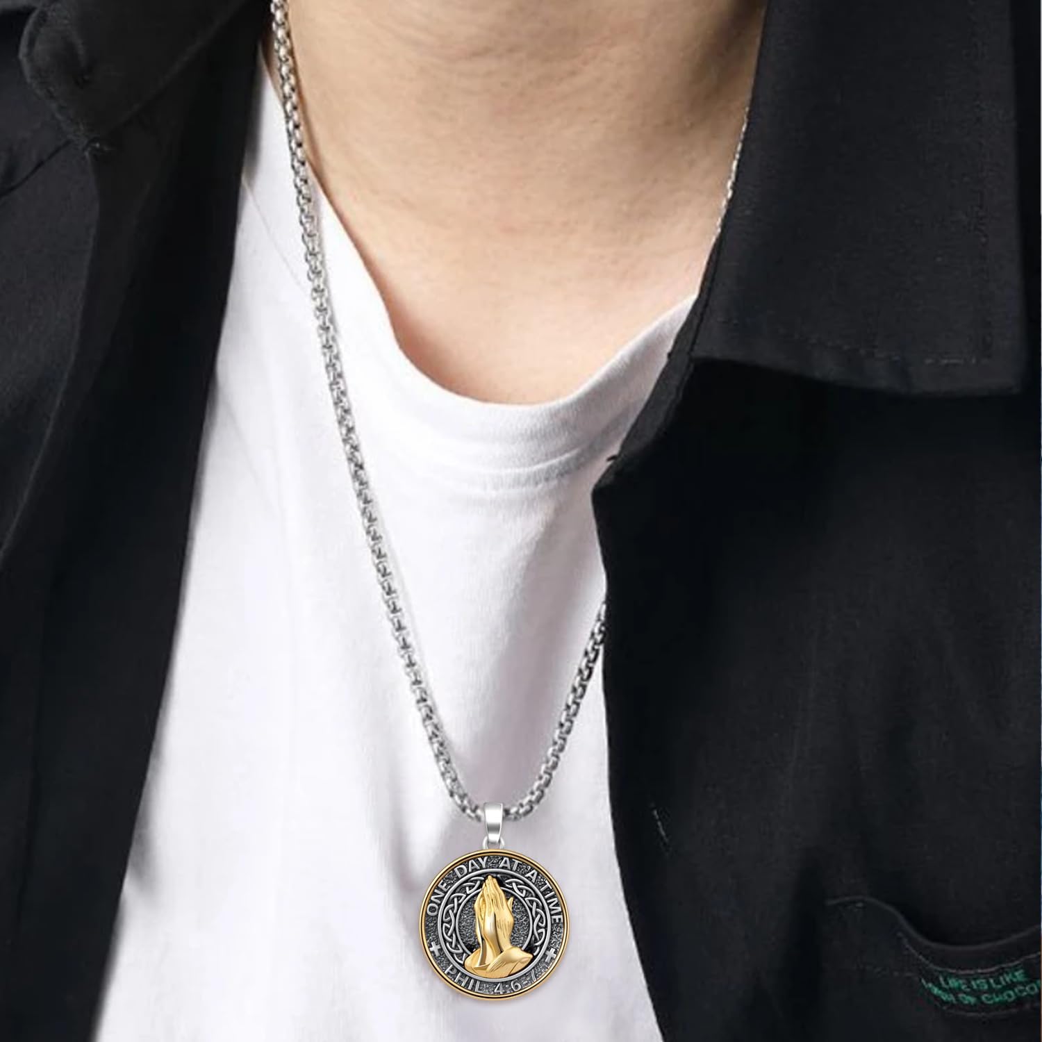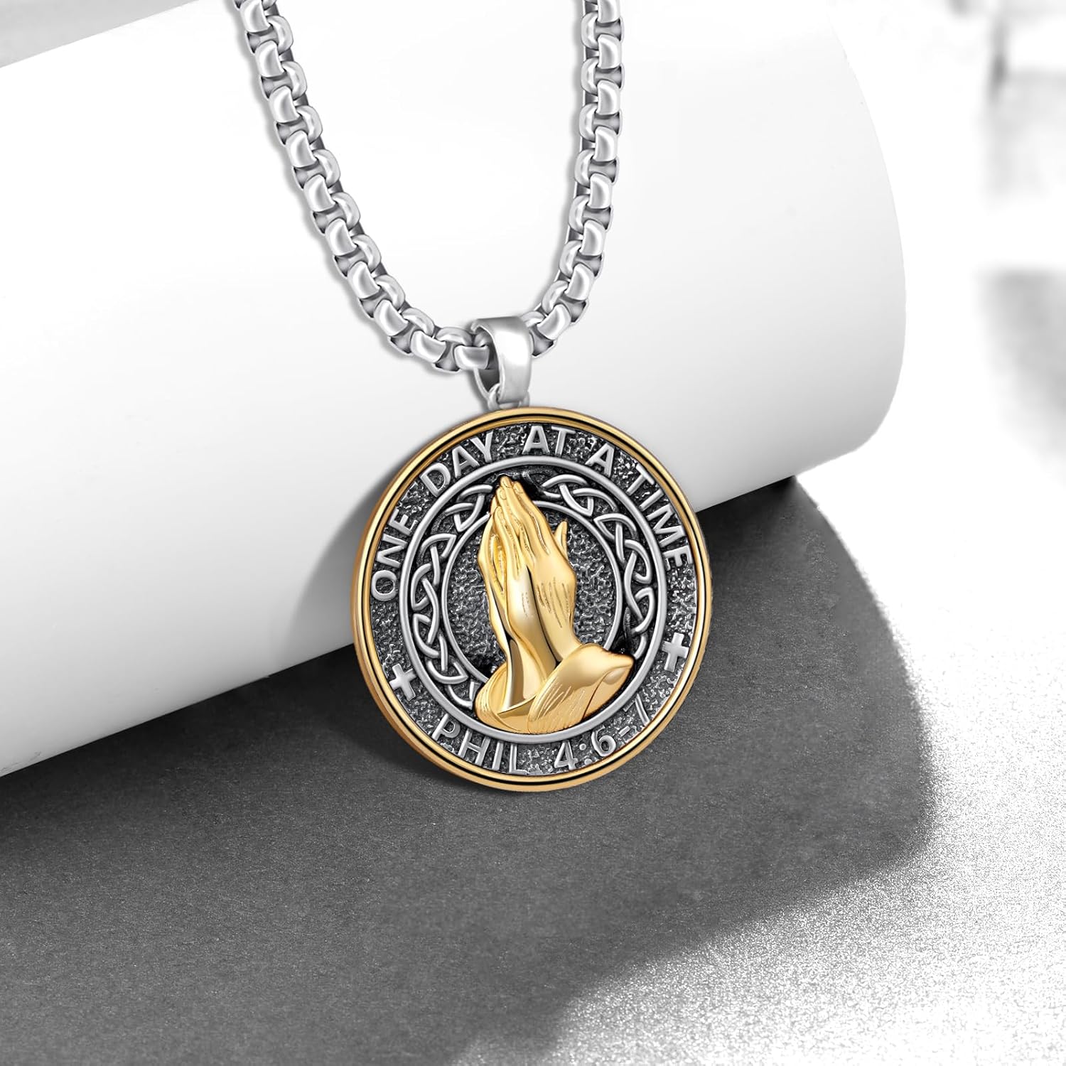 Be the first to review “Serenity Prayer Necklace 925 Sterling Silver Praying Hands Necklace Religious Jewelry Serenity Prayer Gifts for Men Women”