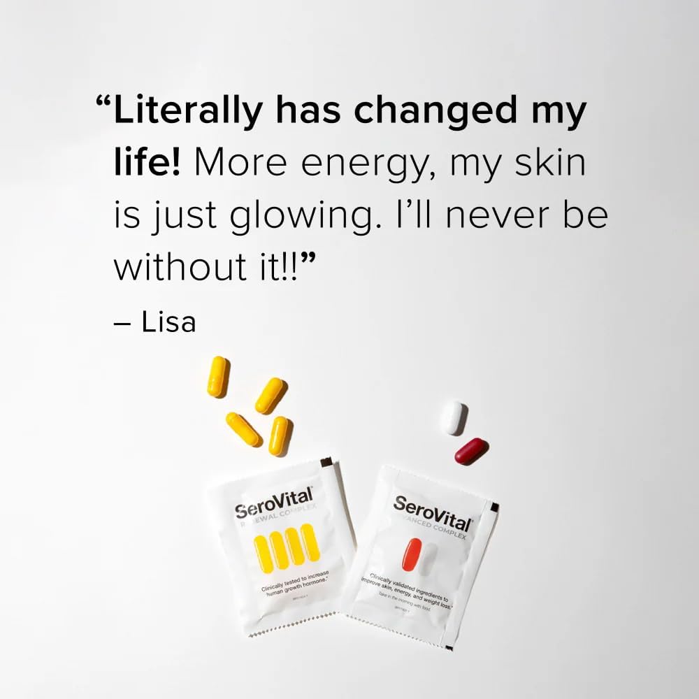 BOOSTED FORMULA – See results within 4 weeks with SeroVital ADVANCED. Begin with our original Renewal Complex then get a boost from the Morning Blend to boost energy, mood, and focus while smoothing and hydrating skin.