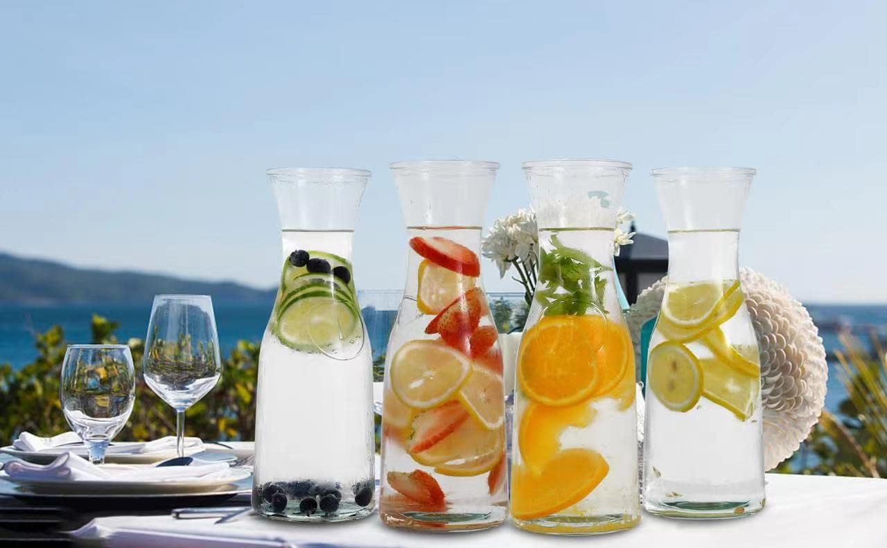 JUST THE RIGHT SIZE AND NUMBER: There are 4 carafes in this pack, each one is 10.4″ H x 3.7″ W, can completely fitted in refrigerator door and interlayer. This is the right size for serving juices on mimosa bar and you can store it in the fridge for cold brewing or storage.