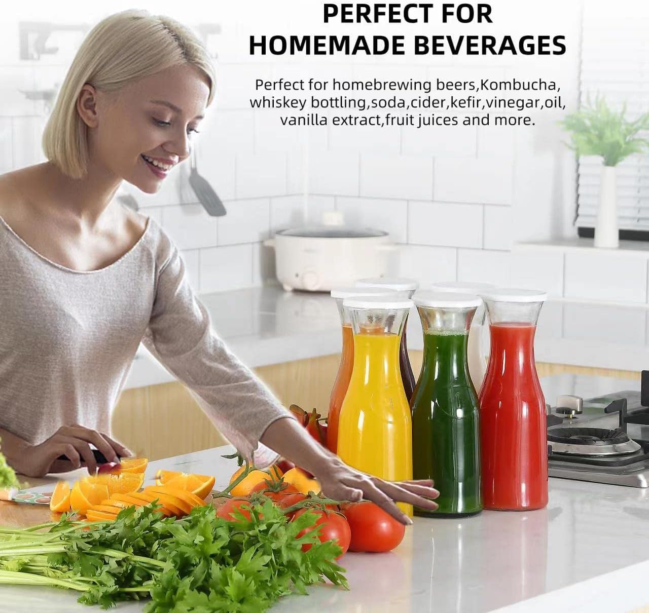 8 reviews for Set of 4 Glass Carafe with Lids, 1 Liter Beverage Pitcher Carafe for Mimosa Bar, Lemonade – 4 Wooden Chalkboard Tags Included