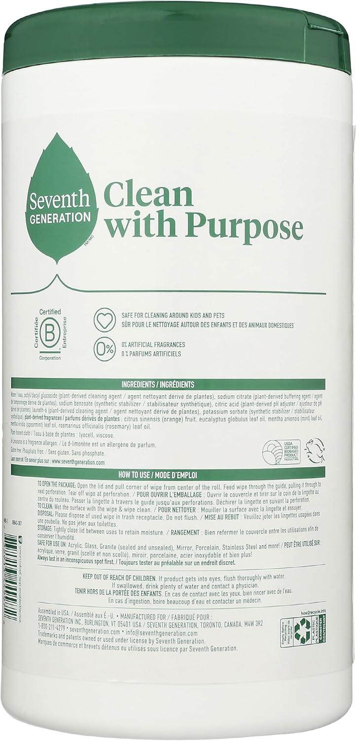 Seventh Generation has been a family favorite for many years especially due to the fact that it will not irritate the skin nor dry it out. It also can be used over soiled fingerprints on doors, painted wood and especially smears on stainless steel. I use it on my glass cooktop without streaking. It truly is a ‘wonder wipe’ in our family. Priced the best on Amazon and delivered quickly via Prime. Packed with care between the containers.