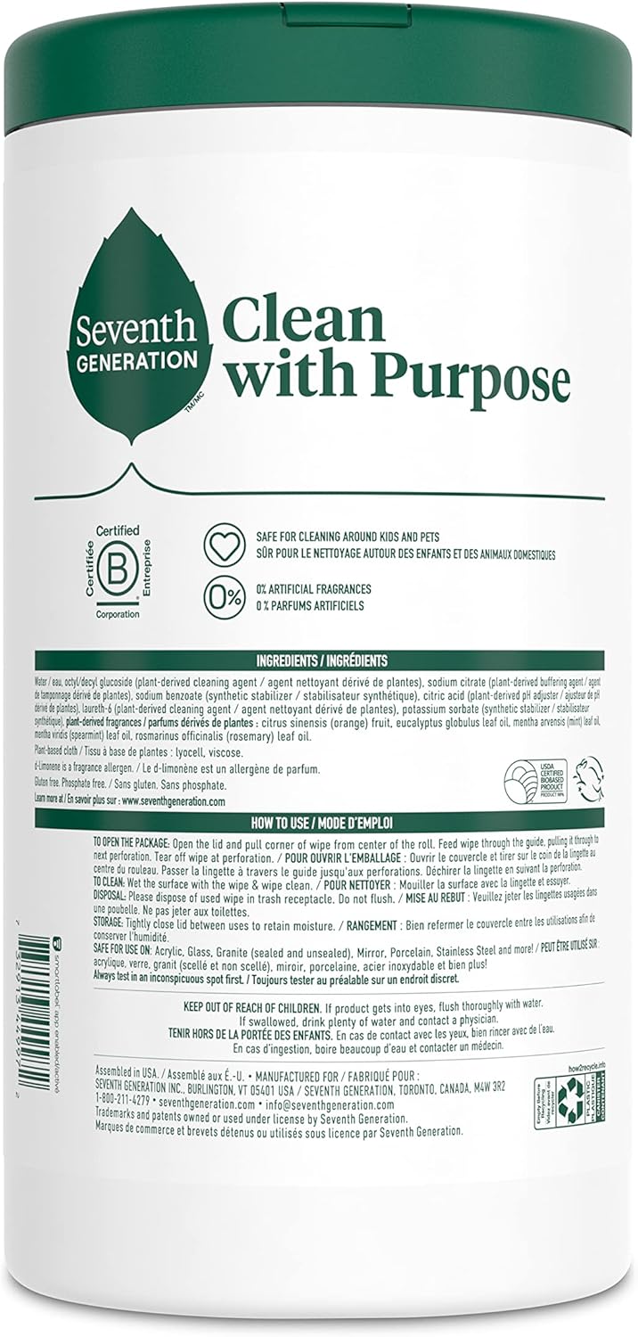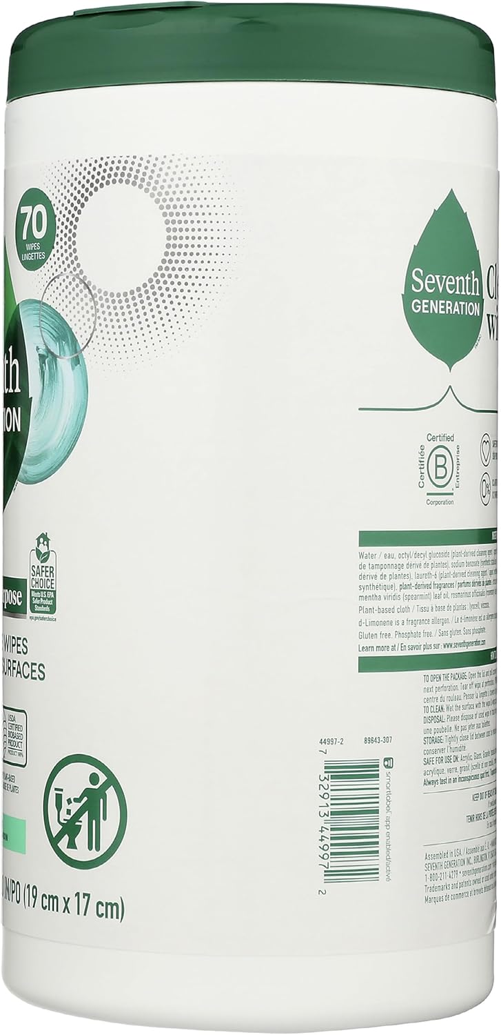 Seventh Generation Multi-Surface Wipes, Garden Mint Scented, 70 Count