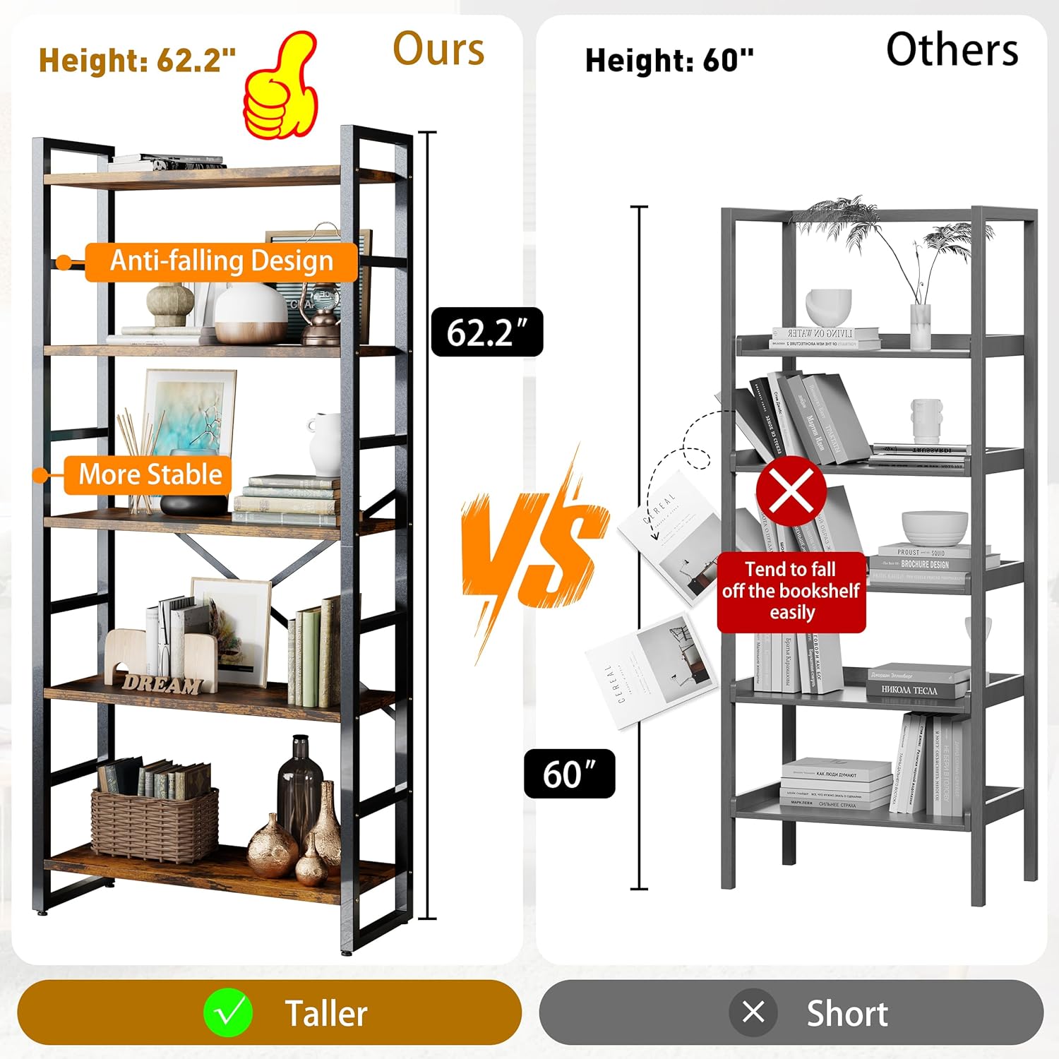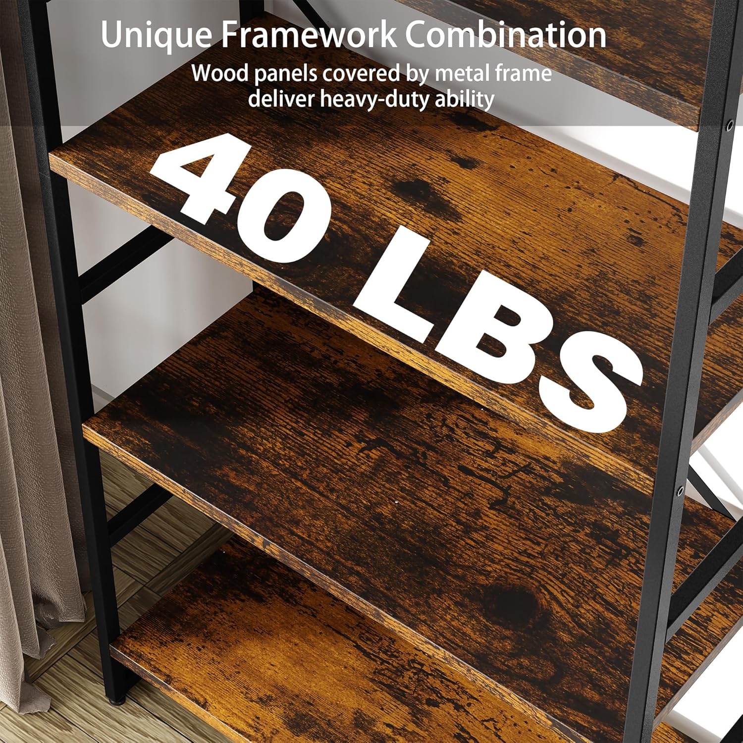 Shintenchi Bookshelf, 5 Tier Bookshelf, Tall Bookcase Shelf for CDs/Movies/Books, Home Office Bookcase Shelf Storage Organizer, Modern Book Shelf for Bedroom/Living Room/Home Office, Rustic Brown