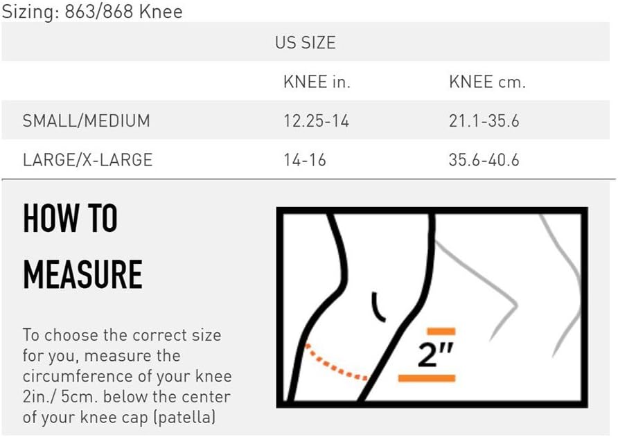 nowhere in its advertisement does this product give measurements. so, I was left to read other’s. any that I could find said if you measure one inch above the knee, 16 to 18 inches was a large and 18 to 20 inches was an x-large. since I liked what I saw, I measured and decided on the large/x-large. when I received the package, I tried it on right away, but could barely get the straps to overlap. I looked at the package again and read the size: large/x-large 14 to 16 inches. this thing is useless to me.