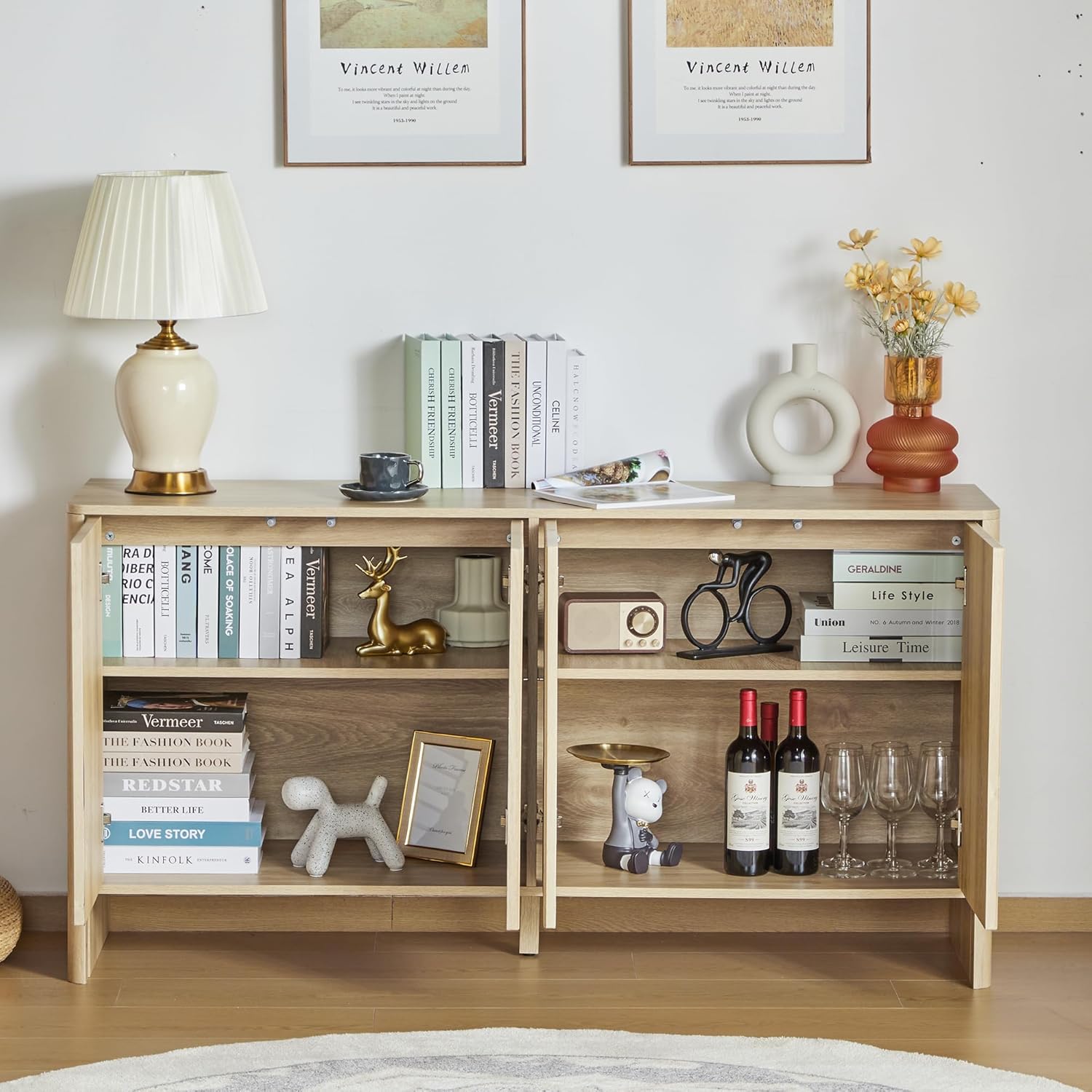 Sideboard Buffets Cabinet, Modern Accent Storage Cabinet with 4 Fluted Doors and Adjustable Shelves, Wood Credenza Buffet Sideboards, Console Table for Kitchen Dining Living Room Entryway (Natural)