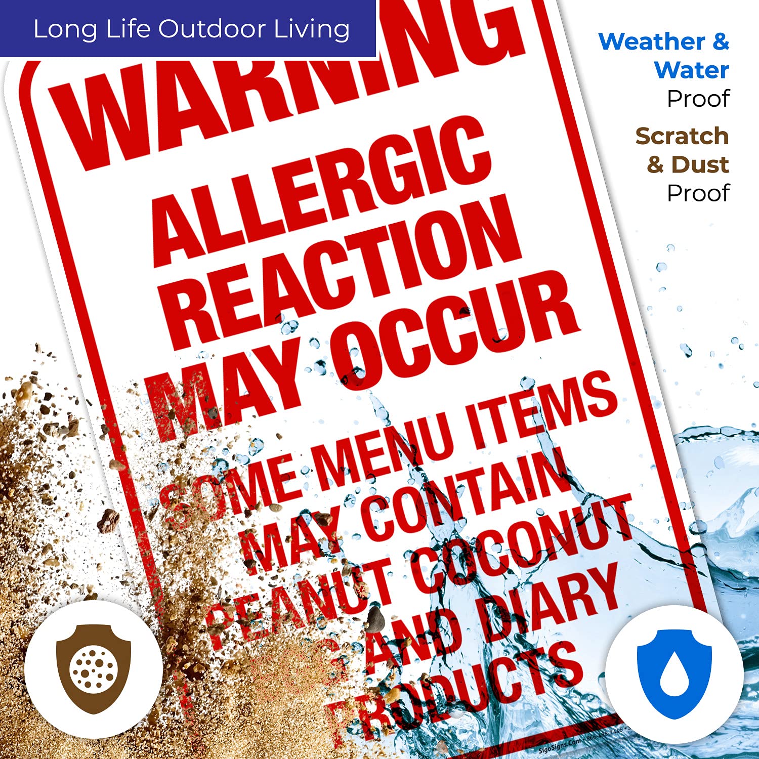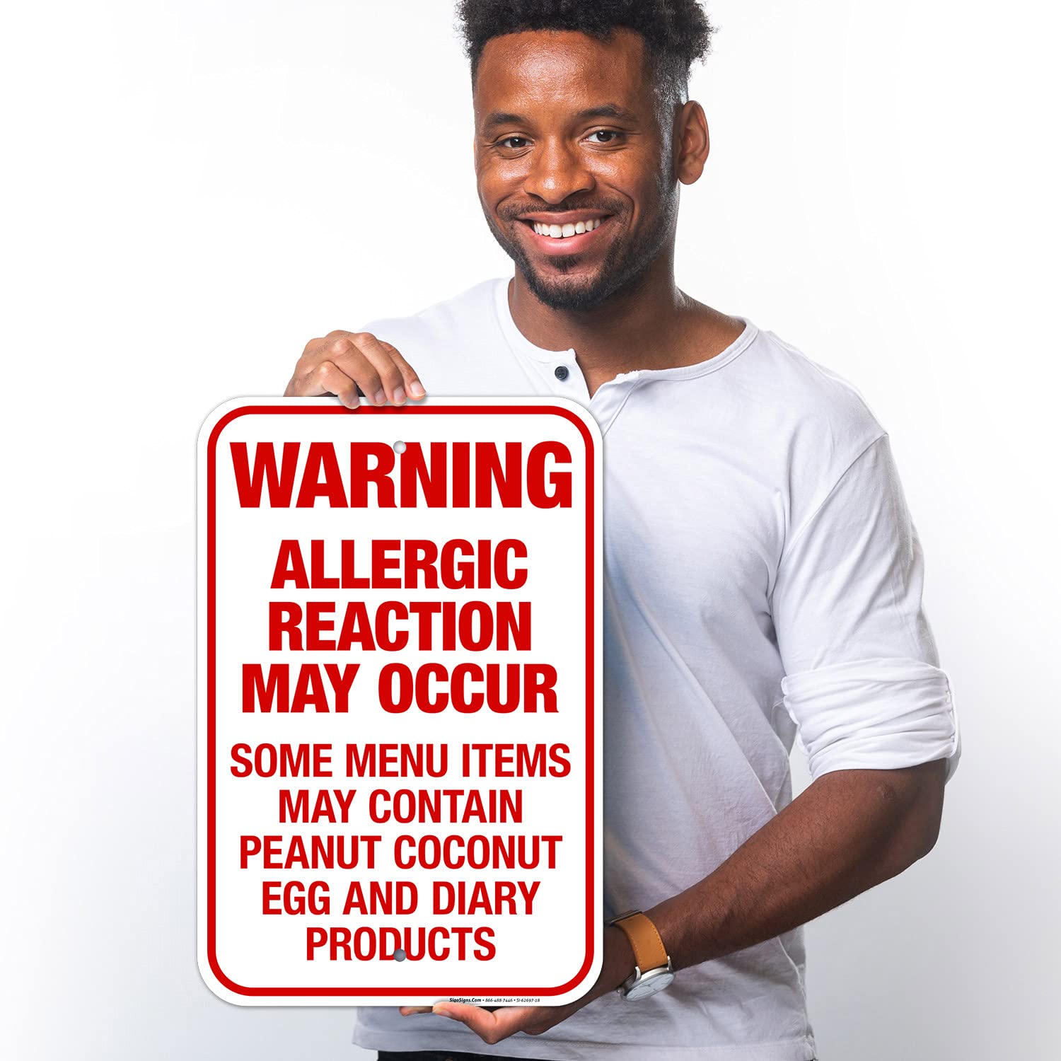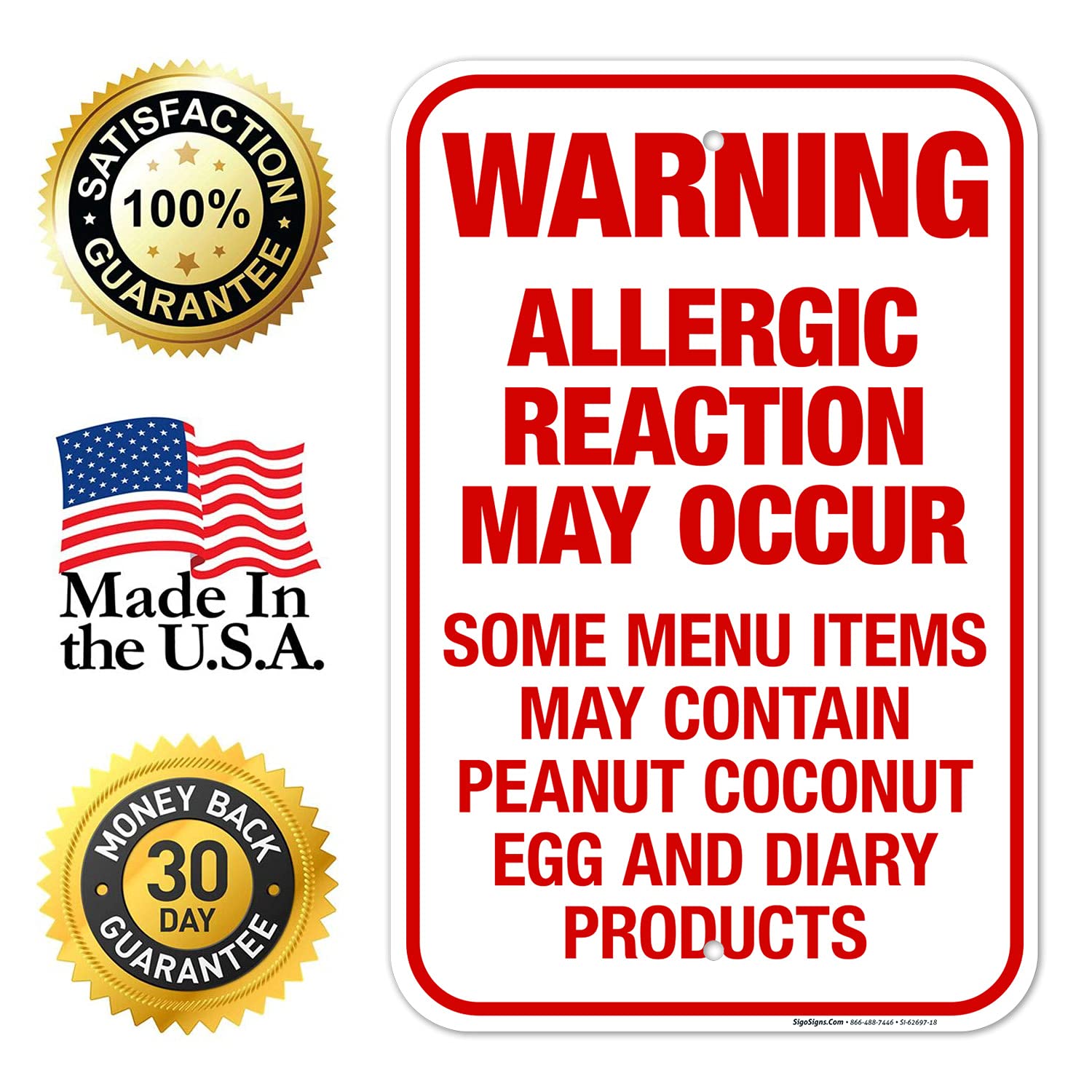 Sigo Signs, Allergic Reaction May Occur Some Menu Items May Contain Peanut Coconut Egg and Dairy Sign, 12×18 Inches, 55 mil Thick HDPS (high Density polystyrene), Made in USA