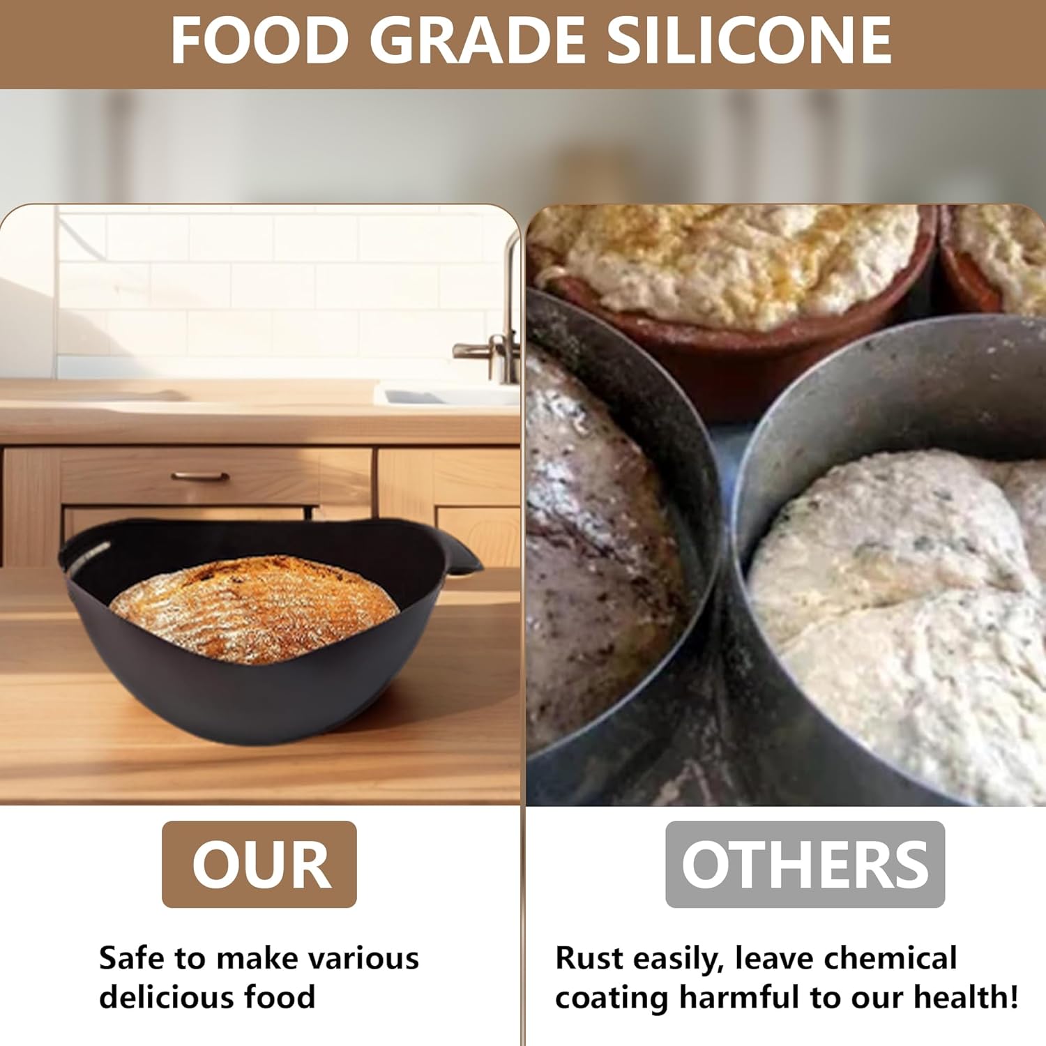 【Heat-Resistant】 Built to last, this bread maker is made of high-temperature-resistant silicone suitable for both microwave and dishwasher. It assures you of no peeling, rusting, or scratching. This bread baking kit can easily withstand temperatures up to 428°F (220°C).