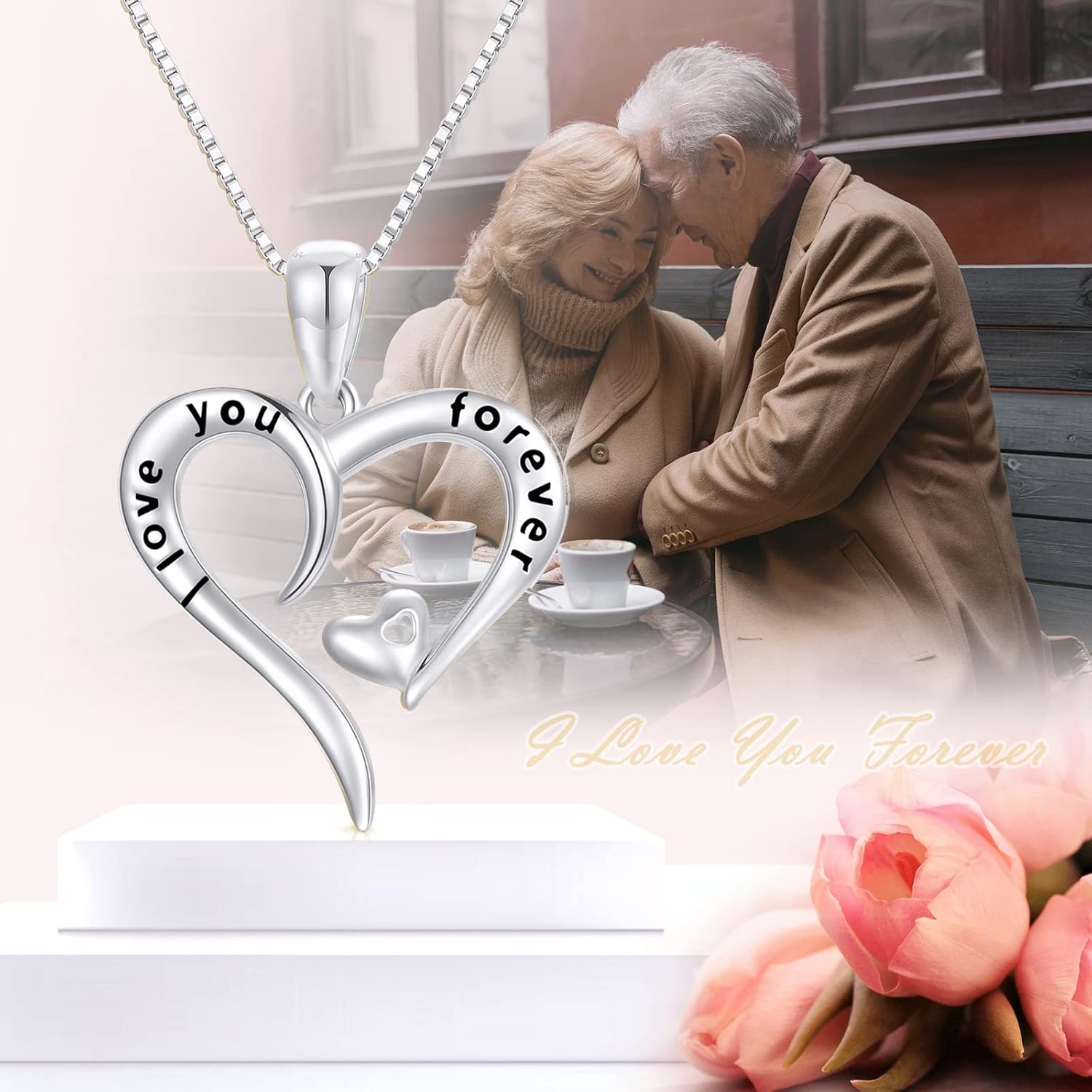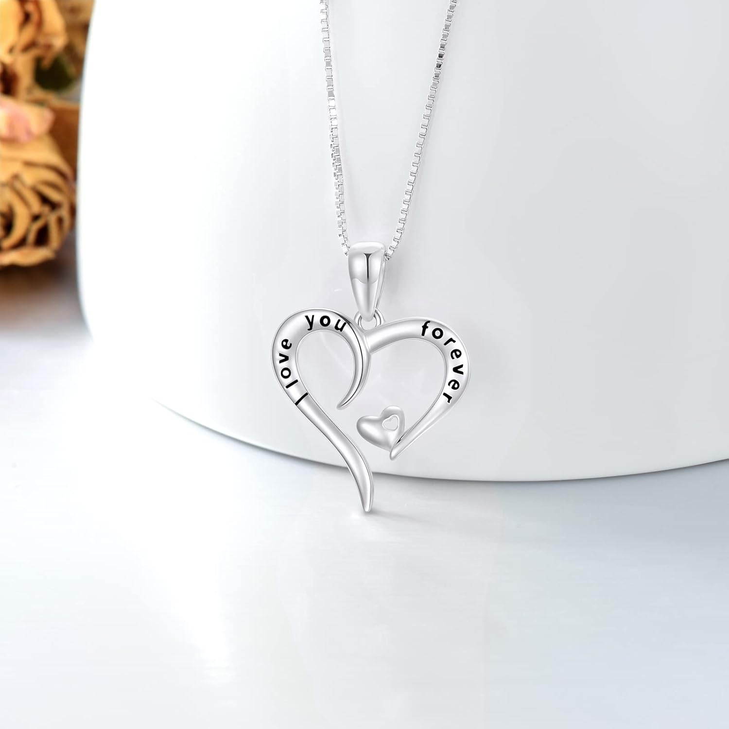SISGEM 14k White Gold I love You Forever Heart Necklace, Real 14kt Gold Box Chain and Love Pendant, 18 Inches
