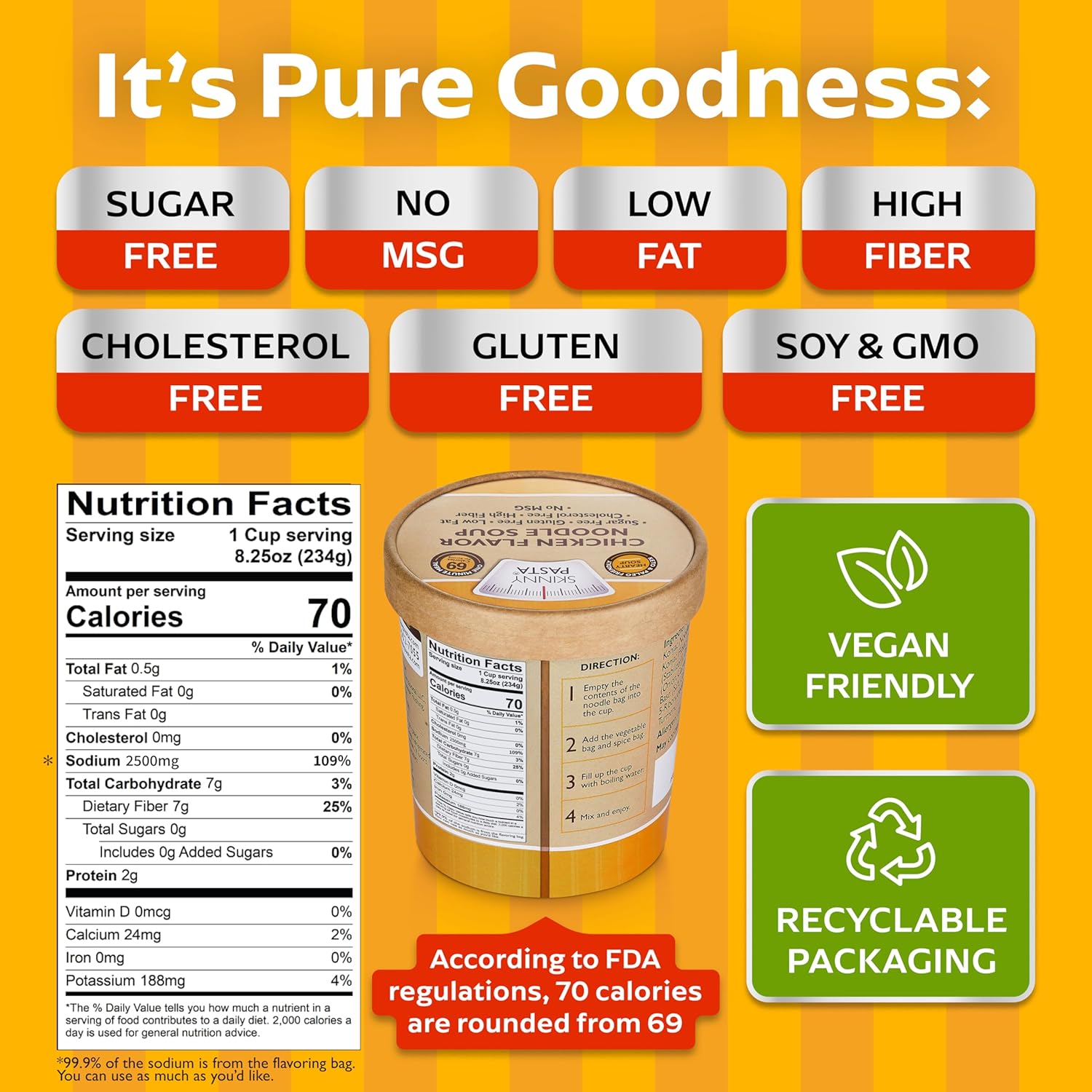 TASTY NOODLES READY IN A MINUTE! Have your healthy cup of soup ready to eat in just a minute whether you are at home or in the office. This skinny noodles hearty soup is fully cooked. Just add boiling water and enjoy the flavorful meal