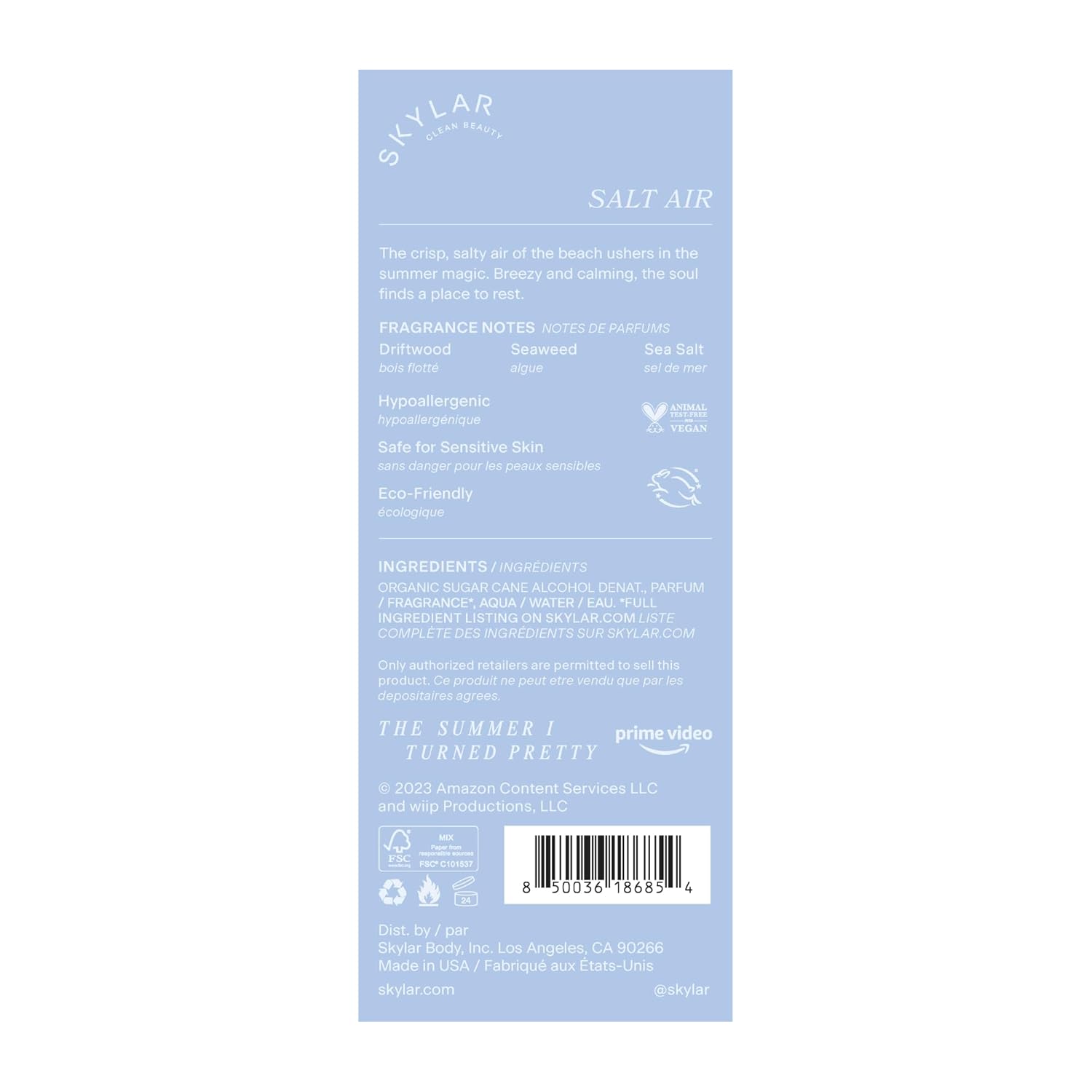 Skylar The Summer I Turned Pretty Salt Air Eau de Perfume – Hypoallergenic & Clean for Women Men, Vegan Safe Sensitive Skin Fresh with Notes of Driftwood, Sea Seaweed