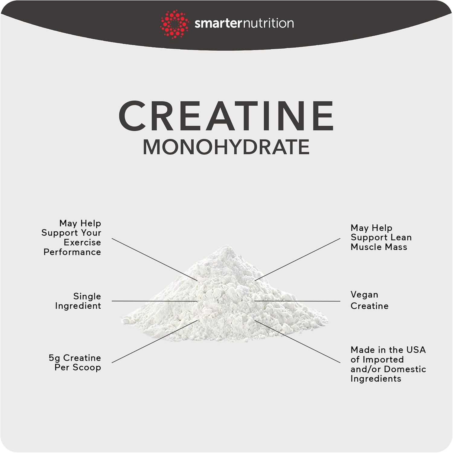 PREMIUM QUALITY: Smarter Nutrition Creatine Monohydrate Powder contains 5 grams of quality creatine monohydrate per serving (one scoop) and is manufactured in the USA of domestic and/or imported ingredients in a cGMP-certified facility with third-party quality control audits