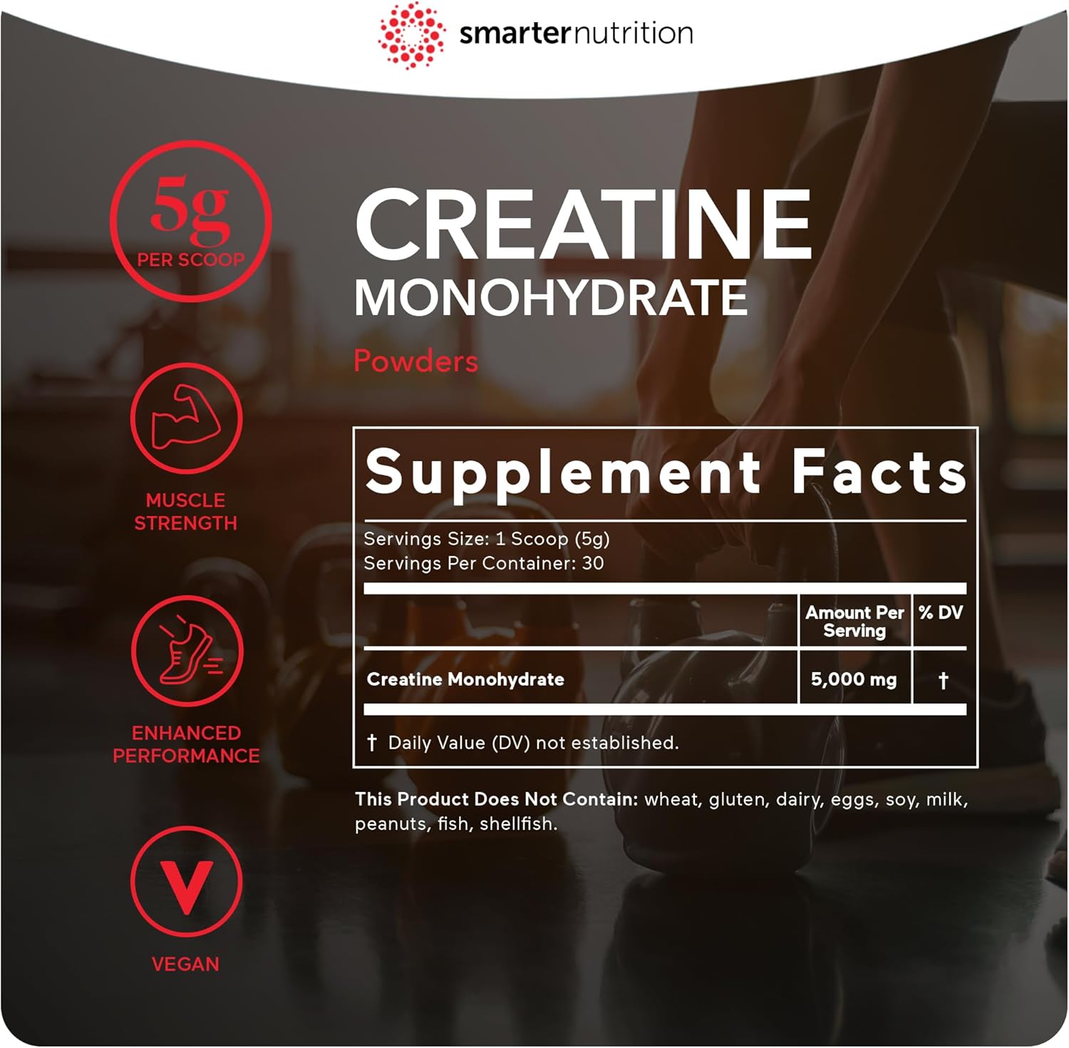 Smarter Nutrition Creatine Monohydrate Powder 5g Vegan Creatine – Pre workout & Post workout Support for Muscles & Endurance [30-Day Supply]