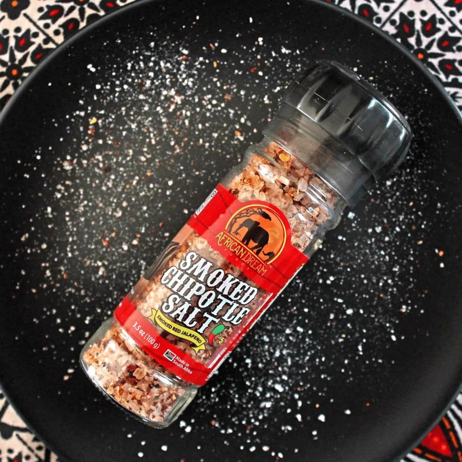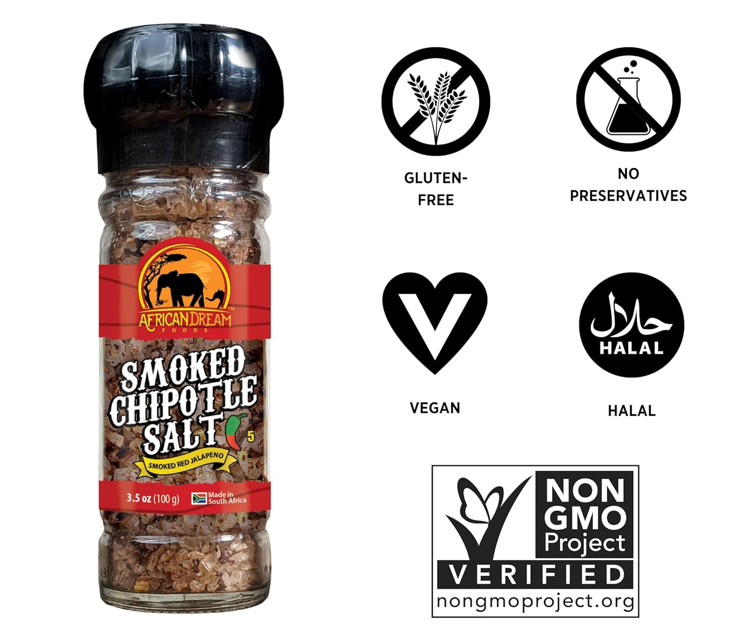 Smoked Chipotle Spicy Salt Seasoning by African Dream Foods | Spicy Chili Salt with Natural African Jalapeno Peppers, Sea Salt | Ideal for Meat, Chicken, Seafood | Reusable Grinder, 3.5 oz | 5-Pack